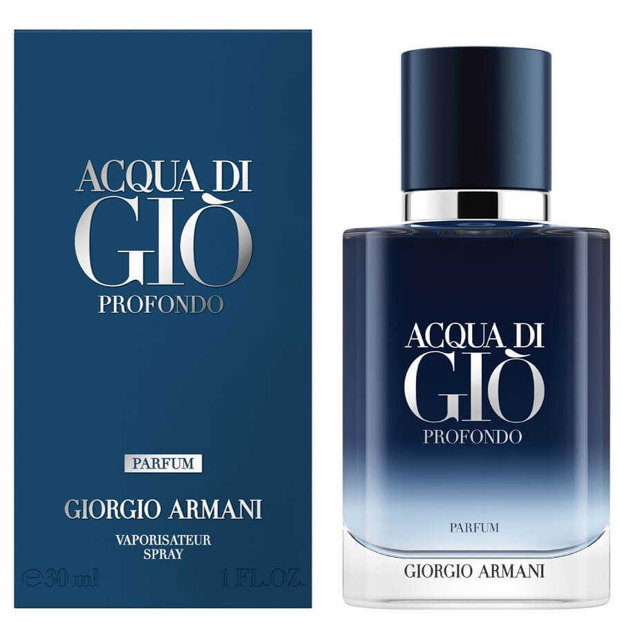 Giorgio Armani Acqua di Giò Profondo Parfum moderni, aromatični miris koji obuhvaća vrijednosti kao što su slobodan duh i moderna muškost. Snažan, sofisticiran i suvremeni miris s izraženom notom muževnosti. Profinjena plava nijansa bočice odaje počast kultnoj boji Giorgia Armanija. Dugotrajniji i intenzivniji nego ikad, Acqua di Giò Profondo Parfum predstavlja vrhunac intenziteta u kolekciji. Vrhunske note uključuju kultne morske arome, osvježavajuće citrusne tonove i začinske naglaske. U srednjoj noti dominiraju aromatični akordi, dok u zavodljivoj baznoj noti prevladava senzualni ton ambera. Od upotrebe pažljivo odabranih prirodnih sastojaka do bezvremenskog dizajna, Acqua di Gio Profondo Parfum odiše jednostavnošću, osobitošću i održivošću.