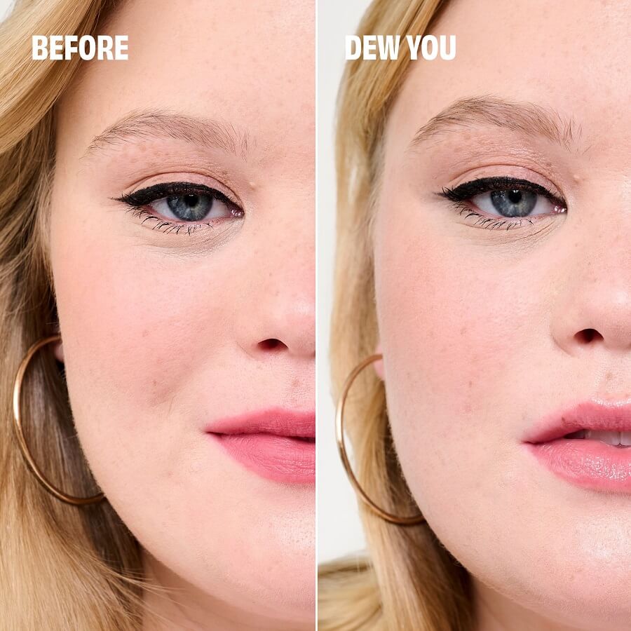 Dew-la-la je lagani tekući posvjetljivač blagotvoran za kožu, koji pruža suptilan, bez napora sjaj. Zahvaljujući sastojcima, vaša će koža tijekom vremena izgledati svjetlije i osjećati se hidratiziranje. Nanesite ovaj omiljeni svakodnevni Benefitov posvjetljivač za sjajni završetak, prirodan izgled i blistavost koja dolazi iznutra, koja će Vas natjerati da kažete… „Dew-la-la!“. Ovaj tekući sjajni posvjetljivač je vodootporan, otporan na znojenje i nekomedogen.