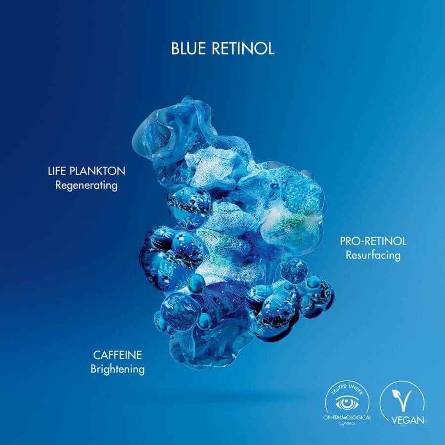 Biotherm proširuje definiciju konture oko očiju na cijelo područje vida u borbi protiv bora, tamnih područja i gubitka čvrstoće, osim bora i napuhanosti. Djelujte na vidljiva nakupljena oštećenja i otkrijte izgled mladog i blistavog izgleda. Područje oko očiju privlači pozornost na lice, stoga i utječe na percipiranu dob. Zato vaša kontura oko očiju zahtijeva posebno rješenje protiv starenja. Biolozi tvrtke BIOTHERM odabrali su ekstrakt L. ochroleuca tijekom faze stresa, kada je alga na vrhuncu svoje napetosti i čvrstoće kako bi dobila aktivnu frakciju. Podrijetlom iz termalnih izvora francuskih Pireneja, Plancton de VieTM sadrži 35 hranjivih tvari, proteina, vitamina, aminokiselina, ugljikohidrata, lipida i elemenata u tragovima koji pomažu stimulirati vitalne funkcije kože, ključne za njezino zdravlje. Bogata i topljiva u isto vrijeme, njegujuća tekstura BLUE THERAPY EYE savršeno je prilagođena tankoj i nježnoj koži oko očiju. Izdašan i svjež pri nanošenju, ne lijepi se, sjaji se i ostavlja savršen mat finiš za pripremu kože za šminkanje.