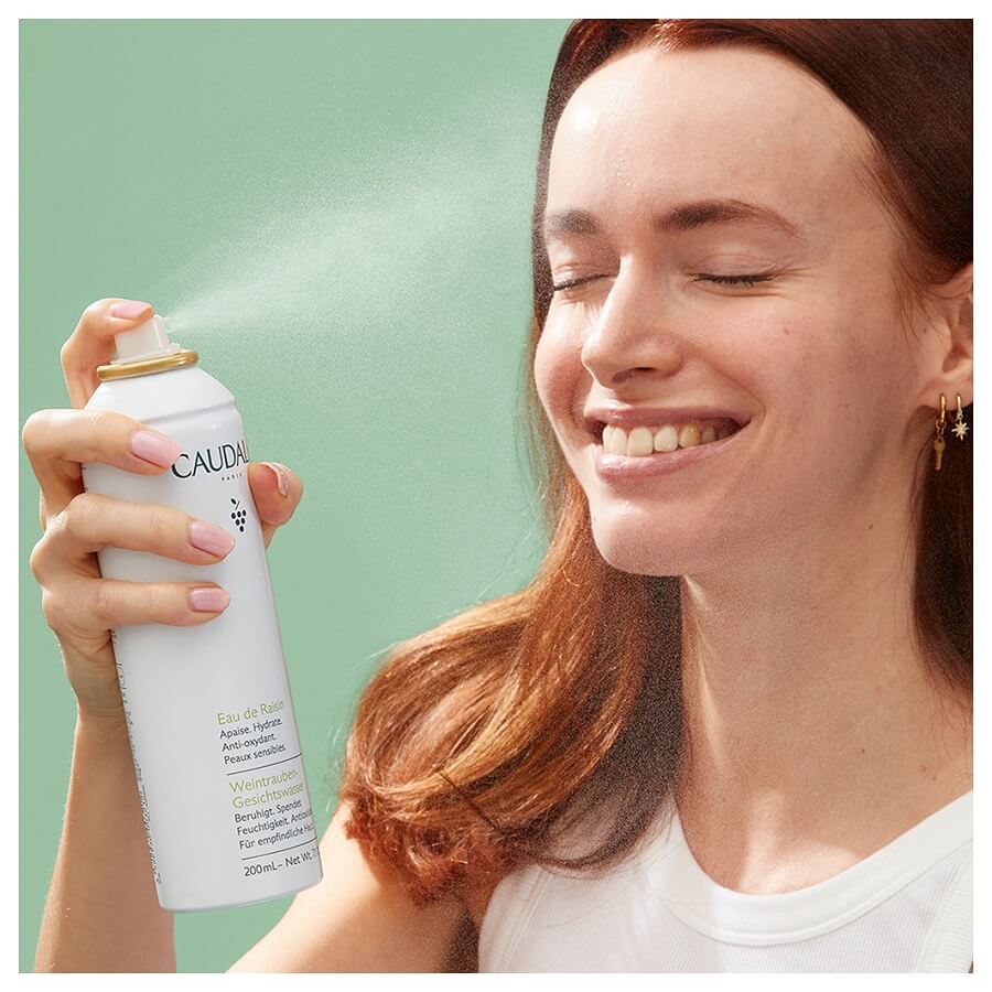 Dobivena ekstrakcijom iz organskog grožđa, Grožđana vodica je postala omiljen moćan kultni Caudalie proizvod. 100% prirodan proizvod sadrži 98% Grožđane vode®, koja intenzivno hidratizira vašu kožu i 2% soka grožđa bogatog oligosaharidima i mineralnim solima koji smanjuju osjetljivost kože. Ova nježna maglica vlaži, umiruje i osvježava kožu, a istovremeno smanjuje osjetljivost.