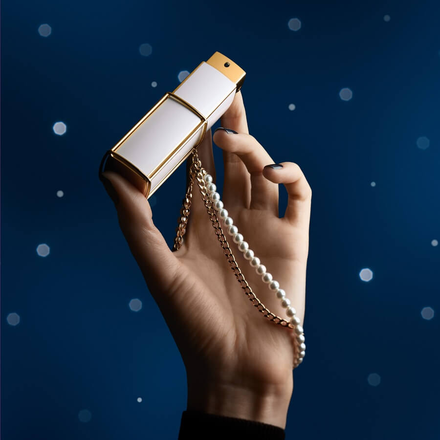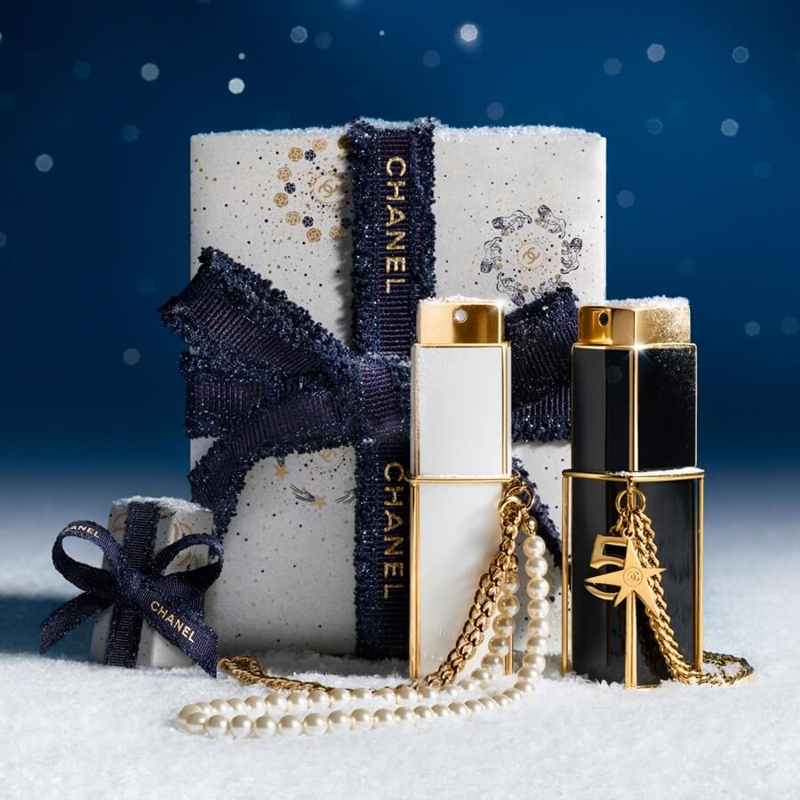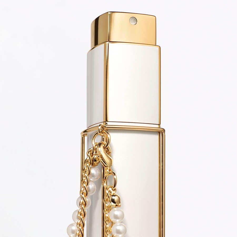 Povodom novogodišnjih blagdana, sprej za torbicu COCO MADEMOISELLE Eau de Parfum Intense otkriva se kao nakit koji krasi zapešće. Koristi se po želji, zahvaljujući svom dvostrukom lančiću sastavljenom od niza staklenih bisera i zlatnih karika, koji se može pričvrstiti i otkopčati. Ovaj je format pogodan za intuitivno, spontano nanošenje i idealan za oživljavanje senzualnih i ambrenih nota mirisa ili za intenziviranje vašeg mirisa tijekom dana.