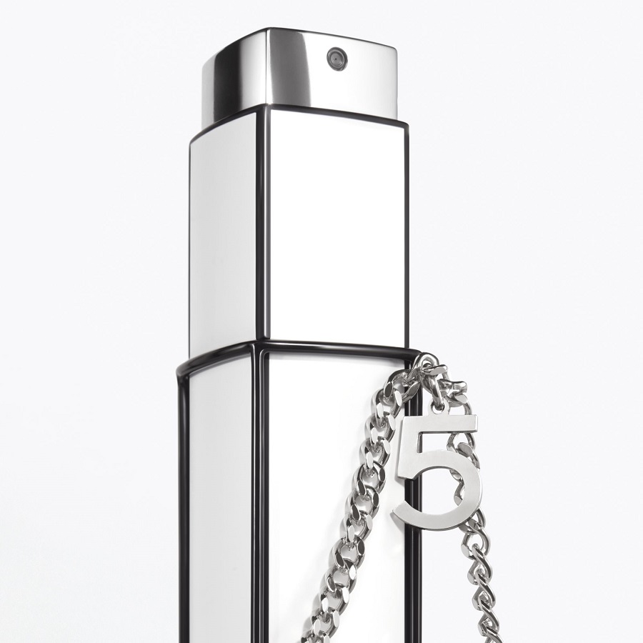 Povodom novogodišnjih blagdana otkrijte posve nov način nošenja mirisa. Novi sprej za torbicu N°5 L'EAU u limitiranom izdanju ukrašen je dodatkom koji dopunjuje njegov zlatni obrub. Nosi se oko zapešća zahvaljujući ukrasnom lancu na kojem se nalazi omiljeni broj Gabrielle Chanel, 5. Kolekcionarski modni dodatak koji možete koristite kako god želite.