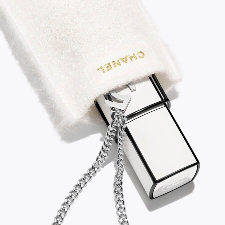 Svaki sprej za torbicu nalazi se u vrećici od bijele tkanine, sa zlatom vezenim imenom CHANEL. Uključuje tri punjenja.