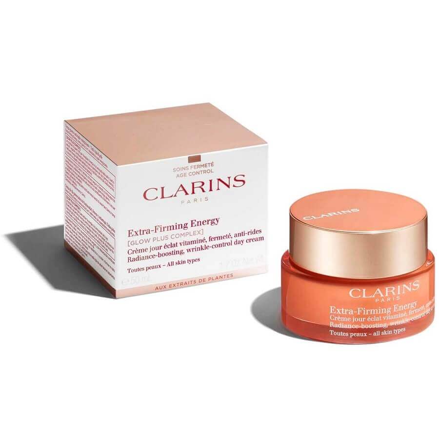 Dnevna krema Extra-Firming Energy za aktivne žene u 40-ima. Ovaj 2-u-1 proizvod kombinira Clarinsovu stručnost na području učvršćivanja kože s efektom blistavosti. Kada se koža podvrgne brzom načinu života, ona postaje beživotna, umorna i pojavljuju se bore... Ekstra-Firming Energy pomaže vratiti koži čvrstoću i pruža blistav ten! I naravno, svaka aplikacija je osjetilno iskustvo zahvaljujući svojoj kremastoj teksturi i svježem, energizirajućem mirisu. Napokon, tretman koji vraća živost koži! Čvrsta koža naprosto blista!