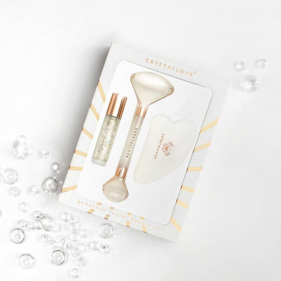 Crystallove Clear Quartz Roller And Gua Sha Set