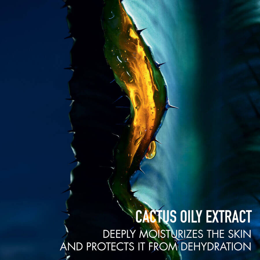 Sastavljen od 95 %* sastojaka prirodnog podrijetla, obogaćen vodenim ekstraktom kaktusa i uljem kaktusa, Sauvage serum hidratizira kožu 100 sati**, jača ju kako bi ju zaštitio od dehidracije i smanjuje vidljivost prvih znakova starenja.