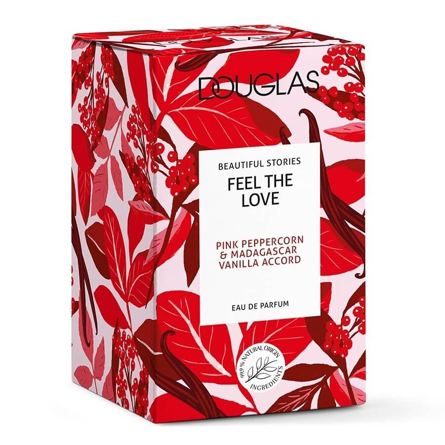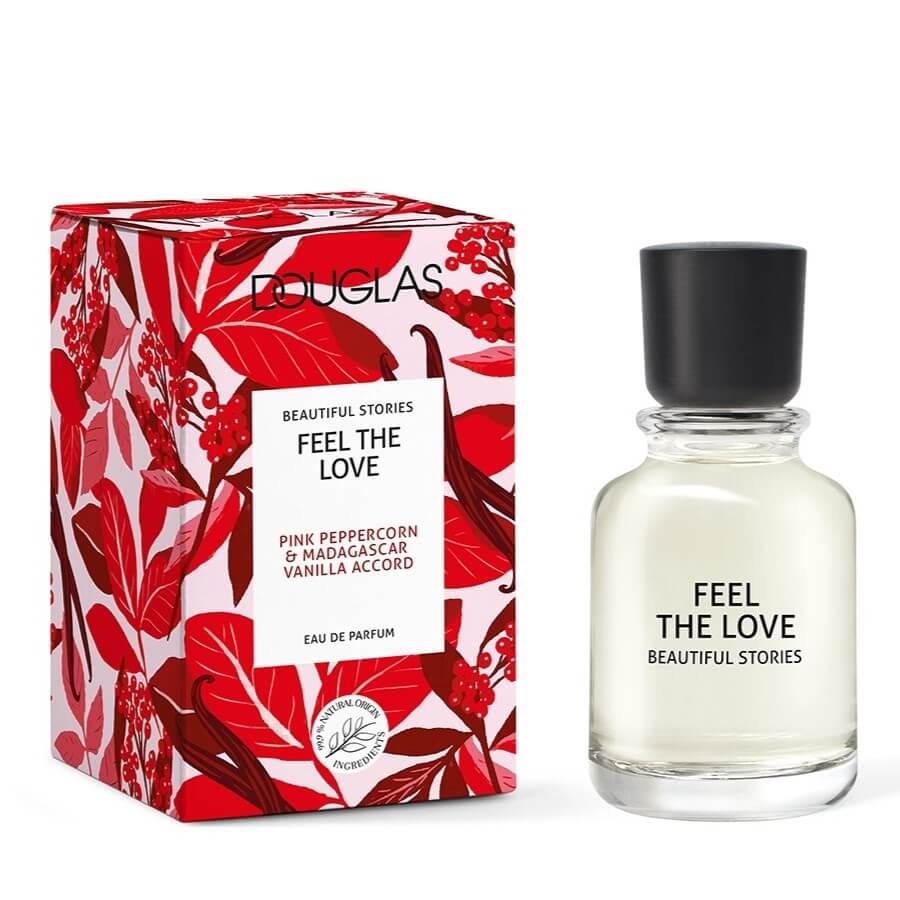 FEEL THE LOVE Eau de Parfum jedan je od jedinstvenih mirisa iz Douglasove kolekcije Beautiful Stories. FEEL THE LOVE je cvjetno-orijentalni miris koji tjera srce da pjeva i otkriva čistu strast. Začinske note svjetlucave naranče u kombinaciji s odvažnim ružičastim paprom stvaraju osnažujuću i očaravajuću gornju notu, praćenu senzualnim srcem izvrsnog ylang-ylanga, nježne ruže i elegantnog zelenog lišća. Zarazna vanilija s profinjenim slatkim benzoinom stapa se s vibrantnim notama mošusa i pačulija u bazi.