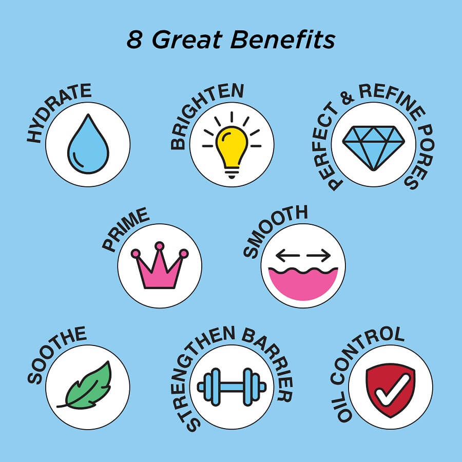 Hidratizira, posvjetljuje, kontrolira sebum kože, pročišćava pore te priprema i usavršava kožu. Nakon 2 tjedna koža izgleda svjetlije, glatkija, pore su pročišćenije i manje vidljive. Odmah nakon nanošenja, priprema i usavršava kožu stvarajući ujednačenu podlogu za šminku. Formulirano s 95 % aktivnih sastojaka prirodnog podrijetla: glicerin i hijaluronska kiselina za hidrataciju i puniji izgled kože, Skvalan dobiven od šećerne trske za jačanje zaštitne barijere kože, Botanical Blurring Complex za kontrolu viška masnoće i matiranje vidljivih nesavršenosti. Dovoljno nježna za sve tipove kože, uključujući osjetljivu kožu. Nekomedogena. Veganska.