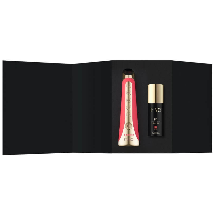 FAQTM 102 spaja najbolje tehnike za pomlađivanje u jedinstveno elegantno rješenje. Anti-aging opcije kliničke razine, kao što su Power-RF zagrijavajući radiofrekventni valovi i LED pulsirajući tretmani punog spektra, obogaćene su EMS-Pro sustavom i patentiranim T-SonicTM pulsacijama. Električna stimulacija mišića (EMS) koristi nizak napon struje za vidljivo konturiranje lica i zatezanje obješene kože. FAQTM 102 donosi Power-RF tehnologiju koja potiče proizvodnju kolagena i umanjuje vidljivost bora, dok LED terapija punog spektra brzo i učinkovito uklanja nesavršenosti te omogućava koži da iskoristi svoje prirodne sposobnosti zacjeljivanja. Za najbolje rezultate koristite uz FAQTM P1 Manuka Honey Primer i uživajte u zaštiti sustava Anti-Shock SystemTM.