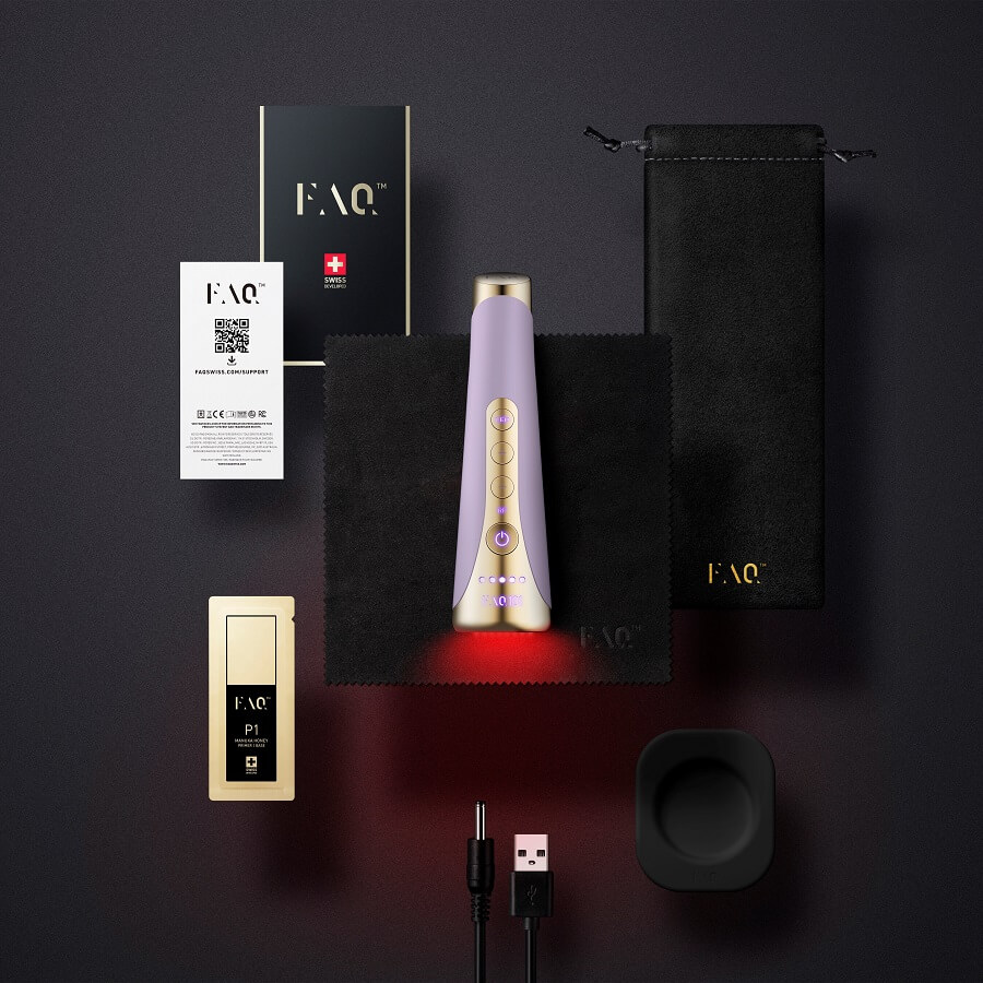 Dobrodošli u doba uzbudljivih anti-aging tretmana kliničke snage. FAQ™ 101 je savršen uvod u Power-RF i LED-pulse profesionalne tretmane pomlađivanja kod kuće, sa zagrijavajućim radiofrekventnim valovima i pulsirajućim crvenim, zelenim i plavim LED svjetlima i T-Sonic™ pulsacijama.