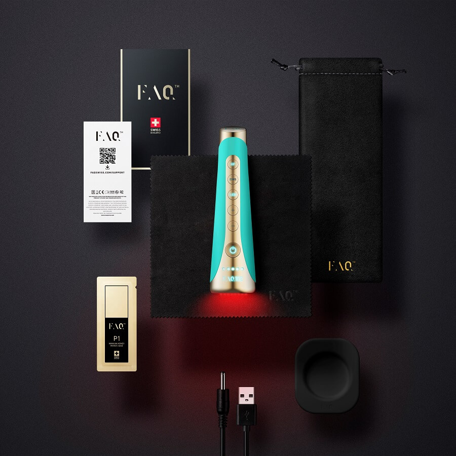 Električna stimulacija mišića (EMS) koristi nizak napon struje za vidljivo konturiranje lica i zatezanje obješene kože. FAQ™ 102 donosi Power-RF tehnologiju koja potiče proizvodnju kolagena i umanjuje vidljivost bora, dok LED terapija punog spektra brzo i učinkovito uklanja nesavršenosti te omogućava koži da iskoristi svoje prirodne sposobnosti zacjeljivanja. Za najbolje rezultate koristite uz FAQ™ P1 Manuka Honey Primer i uživajte u zaštiti sustava Anti-Shock System™. Nije svaka transformacija bolna. Bez filtera, bez filera, samo FAQ™ 102!