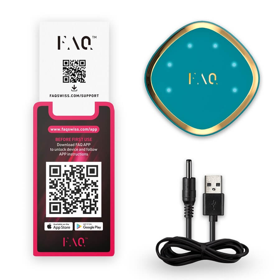 2. Pritisnite univerzalni gumb za napajanje na uređaju kako biste ga uključili. Jačinu T-SonicTM masaže možete promijeniti ponovnim brzim pritiskom gumba. Otvorite vođene tretmane i više postavki u aplikaciji FAQTM Swiss.