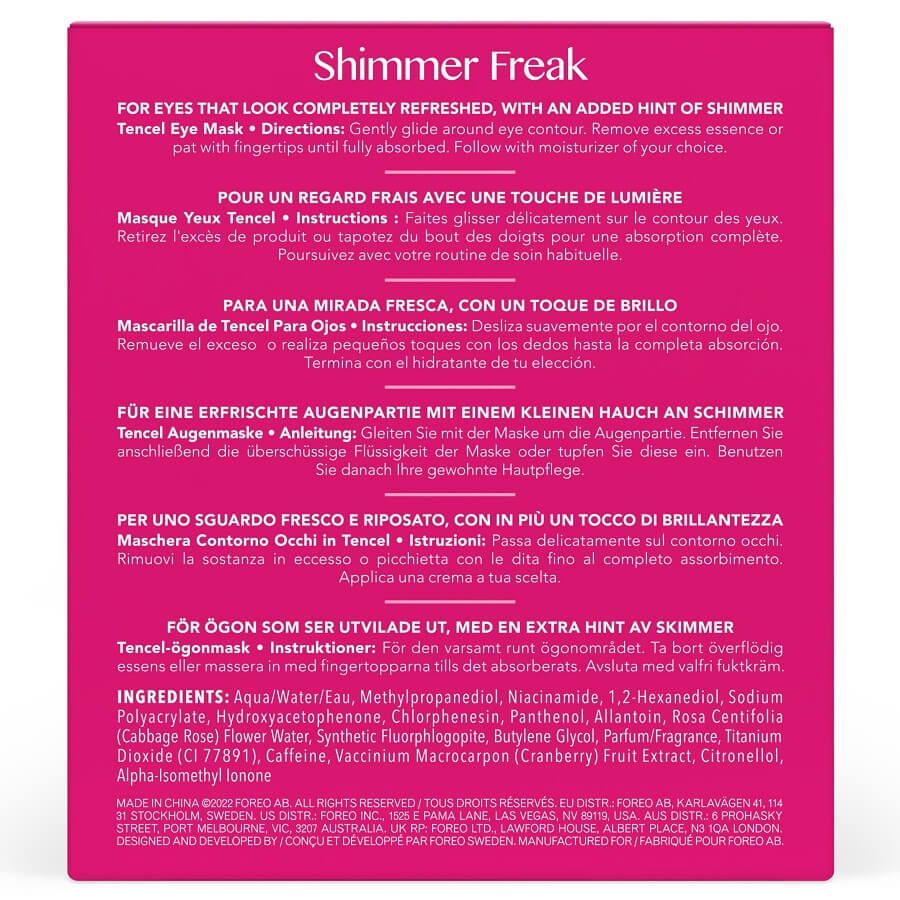 <p>Umorne oči? Nestaju u tren oka uz Shimmer Freak 2.0 – posvjetljujuću masku za područje oko očiju obogaćenu kofeinom. Posebno osmišljena za osvježenje osjetljivog područja oko očiju, pruža vidljivo odmorniji i svježiji izgled te je idealna za podočnjake i natečenost.</p>