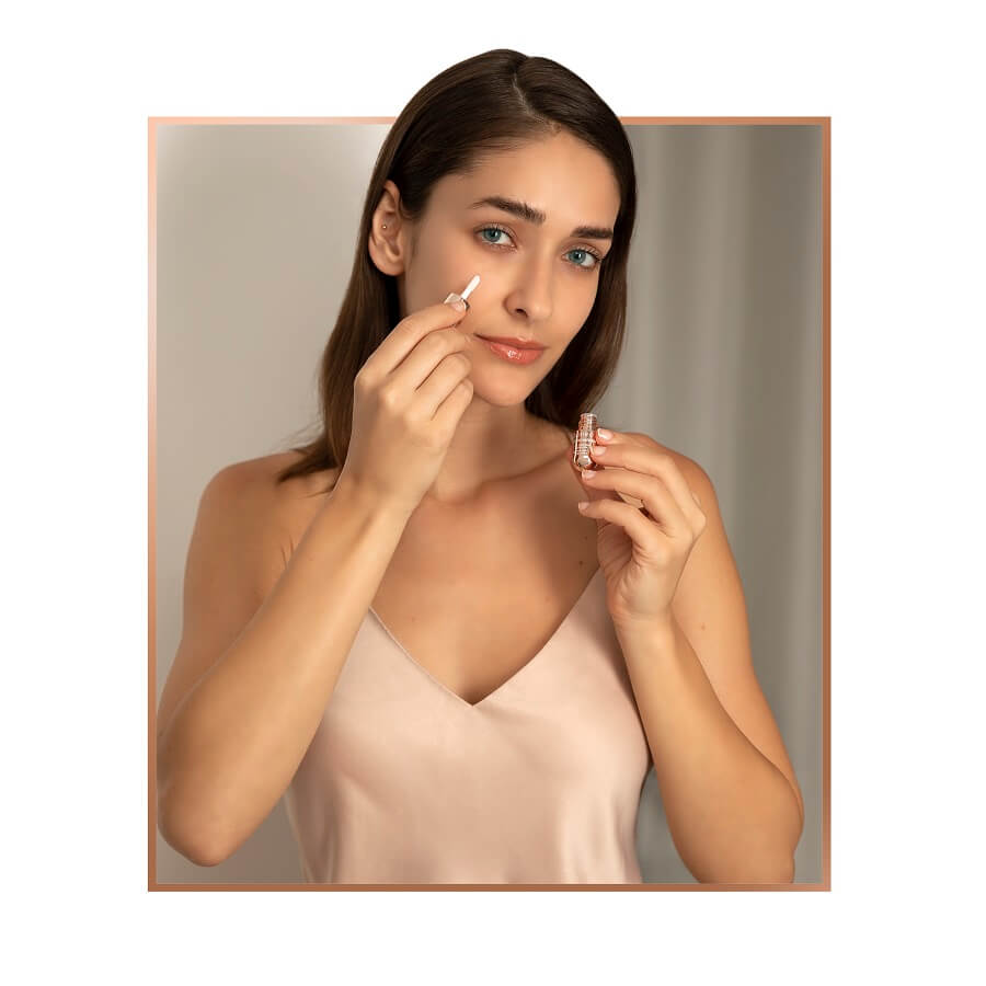 • Provodljiv za najsigurniju i najudobniju uporabu mikrostruje u zatezanju kože • Povećana učinkovitost, bolji i brži rezultati pomlađivanja • Trenutačno posvjetljuje područje oko očiju i ističe usne • Povećava volumen i zaglađuje površinu kože • Smanjuje pojavu finih linija i bora oko očiju i usana • Bogat antioksidansima - kofein i ekstrakt brusnica • Hidratizirajuća ružina vodica • Učvršćujući niacinamid • Vitamin B5 za poboljšanu elastičnost