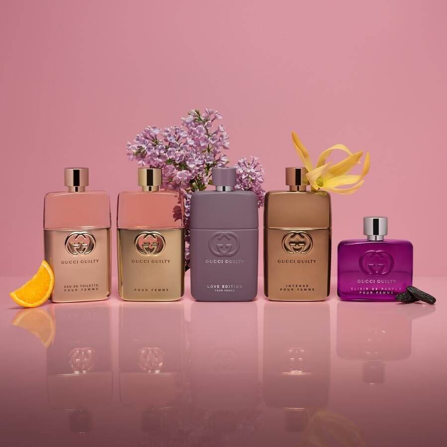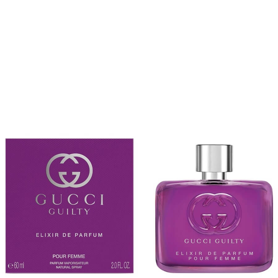 Upućujući puni poziv na istraživanje, stvaranje i povezivanje sa svojim najistinitijim ja, Gucci Guilty Pour Femme i Pour Homme lansiraju mirise s kampanjom u kojoj glume A$AP Rocky, Julia Garner i Elliot Page. Oda samoprihvaćanju, prijateljstvu i ljubavi u svim oblicima. Intenzivan miris za intenzivnu vezu, Gucci Guilty Pour Femme Elixir de Parfum je cvjetno-drveni miris boje jantara za žene. Guilty Elixirs su odvažna tvrdnja, šarena ekstraverzija: senzualni i provokativni mirisi koji upućuju ljubavni poziv da prihvatimo ono što jesmo i dopustimo da se vidi naše autentično ja dok slavimo bezbrojna ponavljanja ljubavi. Parfumeri Quentin Bisch i Nathalie Cetto upotpunili su ovaj Gucci miris senzualnom i tajanstvenom bazom absoluta vanilije probuđenog tamnim zrnima tonke, upotpunjenog Gucci Guiltyjevim potpisom zemljanog pačulija, mandore te cvjetne i ženstvene glicinije. Miris za žene zaokružuje gornja nota citrusnog bergamota koja je prekrasno izbalansirana ružom, osmantusom i slatkim i mekim akordom ljubičice. Ovaj Gucci miris nalazi se u raskošnoj ljubičastoj staklenoj bočici, romantičnom podsjetniku na žensku snagu i odrazu intenzivnog mirisa koji se nalazi unutra. Bočica ovog prekrasnog mirisa neočekivano se poigrava s prozirnim folijama i ima isprepleteni GG logo: dragocjeni sastojci koncentrirani u bočici.