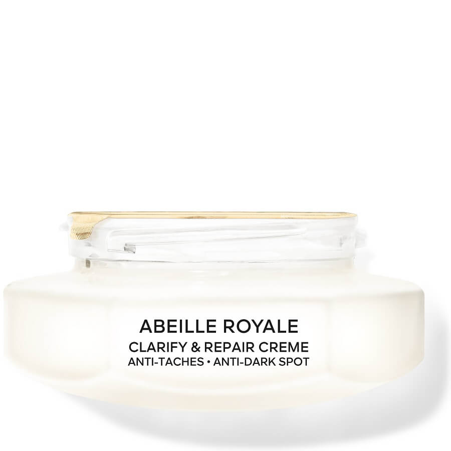 KREMA KOJA VRAĆA MLADOLIKOST I ISPRAVLJA TAMNE MRLJE, ROĐENA IZ ZNANOSTI I OD PČELA Clarify & Repair Creme obogaćena je snažnim medom iz tehnologije Dynamic Blackbee Repair u kombinaciji s koncentratom za aktivaciju svjetline koji kombinira vitamin C¹ za borbu protiv tamnih mrlja² i bijeli med koji vraća sjaj. Dan za danom, tamne mrlje se smanjuju, tekstura kože se pročišćava, bore se zaglađuju, a koža izgleda vidljivo mlađe. Clarify & Repair Creme se može ponovno puniti i formulirana je s 93% prirodnih sastojaka³.