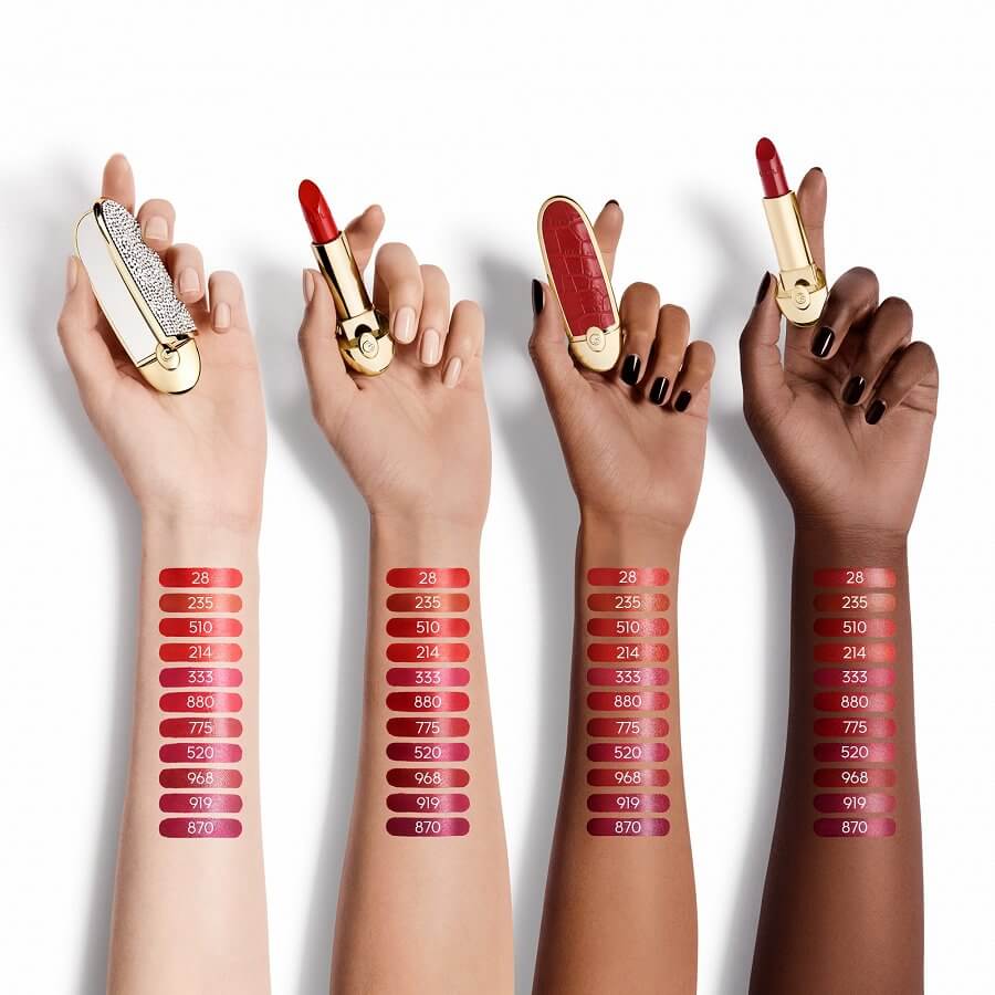 Rouge G, Guerlainov ikonski dragulj / ruž za usne, rekreiran je u ultra-care verziji u kombinaciji sa širokim rasponom visoko pigmentiranih, dugotrajnih nijansi dostupnih u satenskoj ili baršunastoj mat verziji. Ujedinjen je s nizom prilagodljivih kutijica poput dragulja s dvostrukim zrcalom koje možete birati po želji.