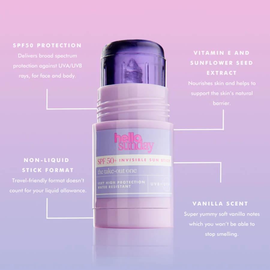 https://www.douglas.hr/p/hello-sunday-the-take-out-one-sun-stick-vanilla-spf-50-hsu44106?c=8754HSU44106The Take-Out One Sun Stick Vanilla SPF 50https://media.douglas.hr/media/image/3b/65/0c/5060527644106.jpg24.4924.49EURInStockLice/Sunce i zaštita/Zaštita od sunca<p>Naš „stik za ponijeti“, dragulj je u našoj SPF kruni, ali htjeli smo povećati UV zaštitu s 30 na 50, poboljšati sastojke za njegu kože i promijeniti miris u ukusan slatki miris vanilije.<br>Ovaj stick lagano klizi po koži, nevidljiv je, hidratantan sa SPF50 za nadopunu zaštite u pokretu.<br>Obogaćen vitaminom E, antioksidansima i prožet laganim notama vanilije, naš novi nevidljivi stik hrani kožu i održava je zaštićenom, hidratiziranom i predivno mirisnom. Osim toga, ekstrakt sjemenki suncokreta pomaže u jačanju prirodne barijere kože, osiguravajući još bolju zaštitu.</p>