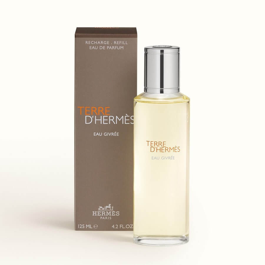 Zahvaljujući Terre d'Hermès Eau Givrée bočici za ponovno punjenje od 125 ml, raspršivači od 50 ml ili 100 ml izrađeni od ledenog stakla i brušenog aluminija mogu se jednostavno ponovno napuniti. Ekološki osviještena gesta – neraskidivo povezana s predmetom koji je stvoren da traje. Terre d'Hermès Eau Givrée, toplina leda. Nova parfemska voda ispunjena intenzivnom svježinom. Miris Terre d’Hermès Eau Givrée, koji je kreirala Christiane Nagel, parfumerka Hermèsa, kombinira vitalnost limuna i jezgrovitu svježinu bobica kleke sa snagom Timut papra. Ledeni dodir susreće se s izdašnim mineralnim i drvenim notama koje karakteriziraju Terre d’Hermès. Terre d’Hermès Eau Givrée istražuje nova područja u kojima su svježina i snaga u dijalogu. “Fini, ledeni veo čini zemlju plodnom i ispunjava je novom, osnažujućom snagom,” kaže Christine Nagel, glavni parfumer u Hermèsu. Terre d’Hermès Eau Givrée hvata dvije suprotnosti u jednoj bočici: rashlađujuću svježinu i vitalnu snagu. Eau de Parfum kombinira vitalnost citron limuna s jezgrovitom svježinom bobica kleke i snagom Timut papra. Kolekcija Terre d’Hermès opisuje odnos između čovjeka i zemlje. Njegov dijalog s prirodom i elementima karakterizira skromnost i sklad.