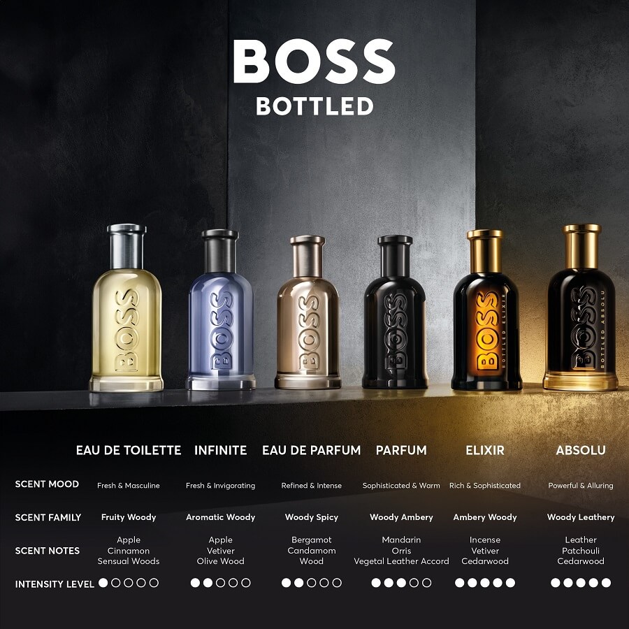 Zračite maksimalnom sofisticiranošću uz BOSS Bottled Absolu. Moderan i nezaboravan, ovaj osebujni miris dokaz je moći BOSS muškarca koji svakoj odluci, svakom izazovu i svakom uspjehu dodaje svoju zlatnu notu. Ovaj drvenasto-kožni miris odmah osvaja osjetila. Ovo je zadivljujući BOSS parfem, formuliran u najvišoj koncentraciji mirisa ikada, nadograđujući svoj suštinski drveni potpis s apsolutnom dubinom – samu bit BOSS-a. Razvijen od strane Annick Menardo u suradnji sa Suzy Le Helley, BOSS Bottled Absolu se otvara akordom kože s esencijom tamjana. U srcu ovog BOSS muškog parfema je esencija pačulija i smirne, koji naglašavaju snagu i luksuz ovog sofisticiranog mirisa. Bazne note tople cedrovine i voćna esencija davane ostavljaju dugotrajan, dragocjen trag. Ovaj jedinstveni BOSS Bottled miris temelji se na raskoši s toplom, ali laganom jantarnom bazom.