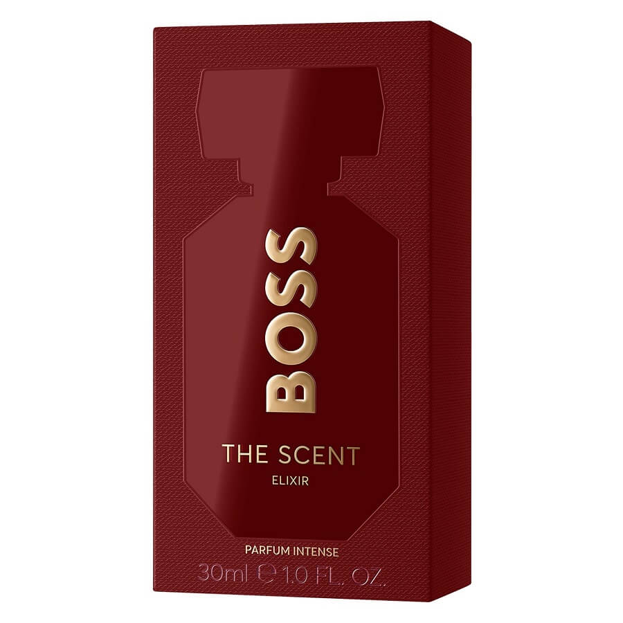 BOSS The Scent Elixir for Her ponovno ističe osnažujuću senzualnost u upečatljivoj bočici ukrašenoj ogromnim BOSS logom na blistavom tamnocrvenom lakiranom staklu i okrunjenom dvostrukim B monogramom tople zlatne boje. Hvatajući svjetla reflektora, njegov višestrani oblik odražava osjetilni obračun unutar ovog tjelesnog mirisa, istovremeno odražavajući mnoge strane moćnog para.
