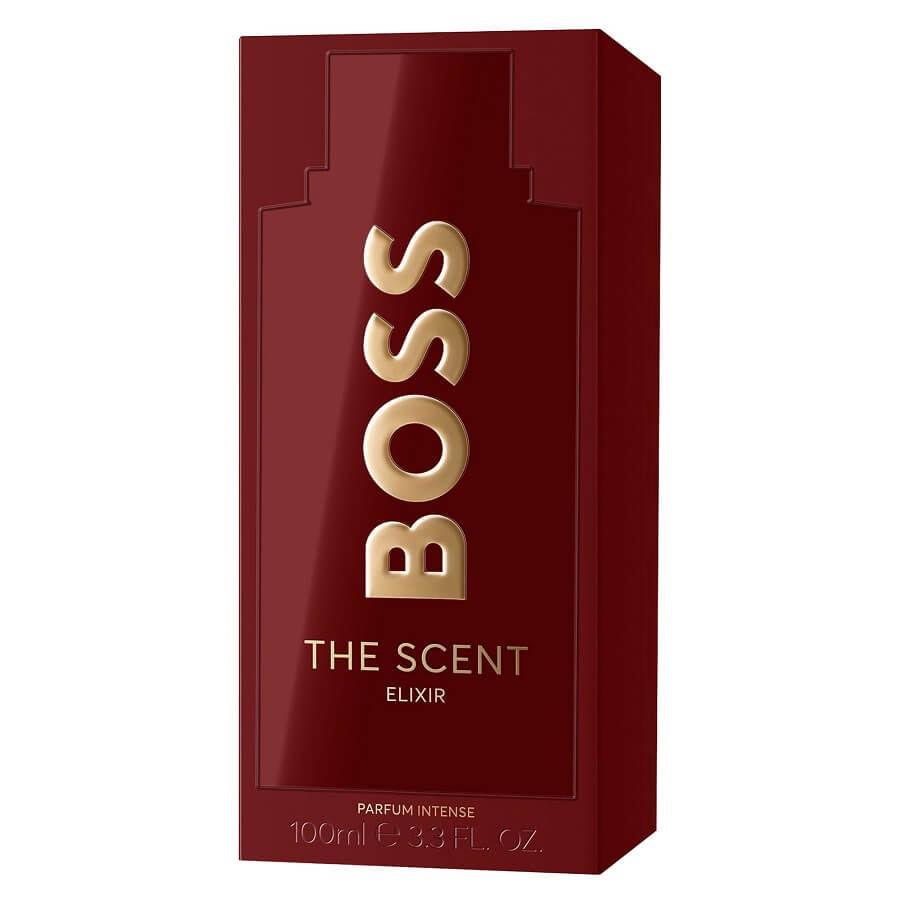 BOSS The Scent Elixir for Him ponovno ističe osnažujuću senzualnost u upečatljivoj bočici ukrašenoj ogromnim BOSS logom na blistavom tamnocrvenom lakiranom staklu i okrunjenom dvostrukim B monogramom tople zlatne boje. Hvatajući svjetla reflektora, njegov višestrani oblik odražava osjetilni obračun unutar ovog tjelesnog mirisa, istovremeno odražavajući mnoge strane moćnog para.