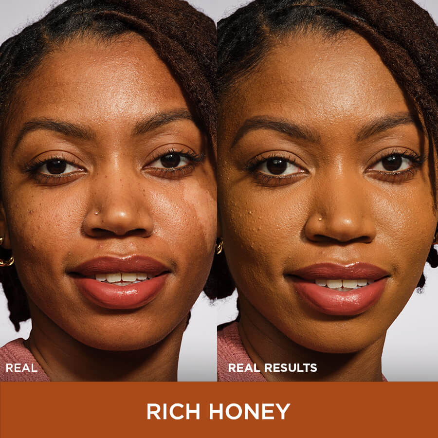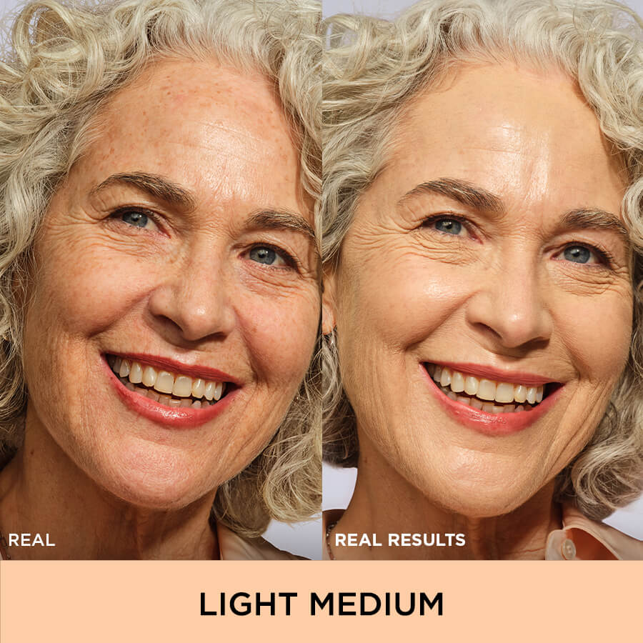 Hidratantna formula, obogaćena hijaluronskom kiselinom, kolagenom i svilom, nježno prekriva nedostatke i umanjuje vidljivost pora, ostavljajući kožu blistavom i zaštićenom od sunca (SPF 50+).