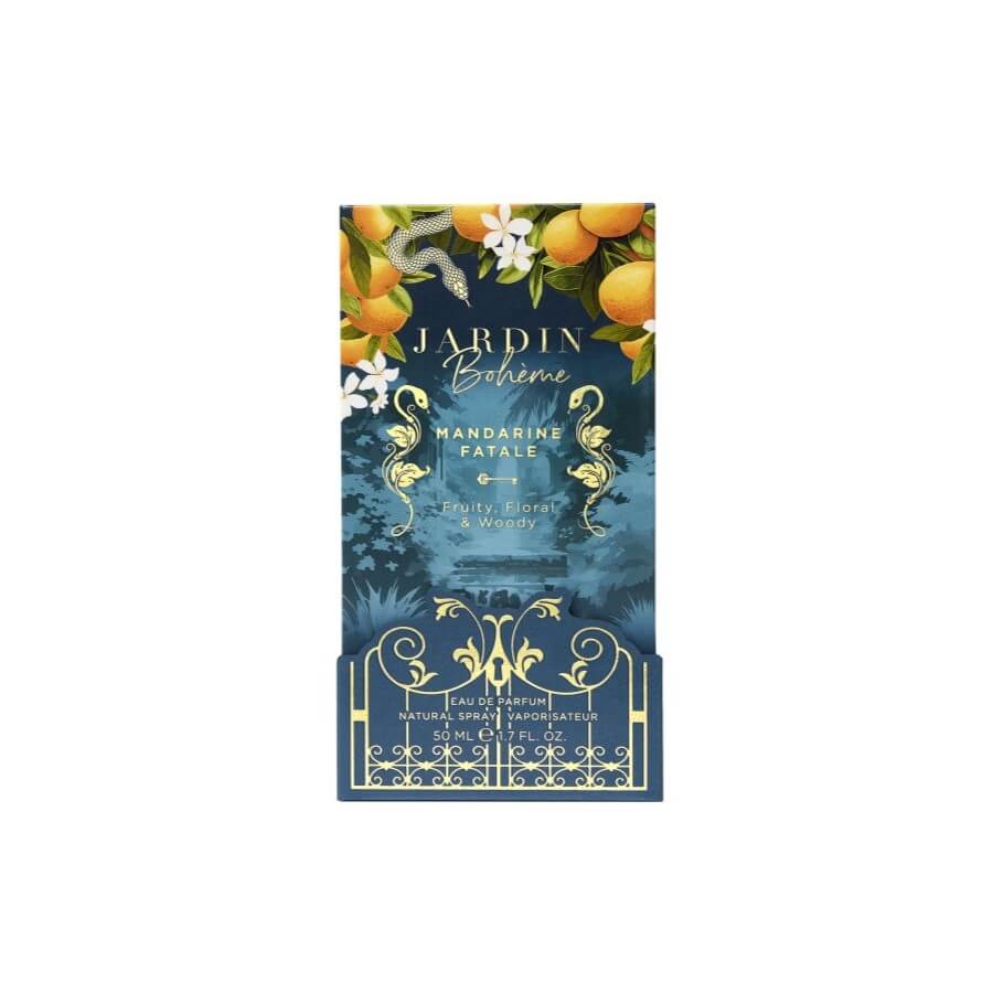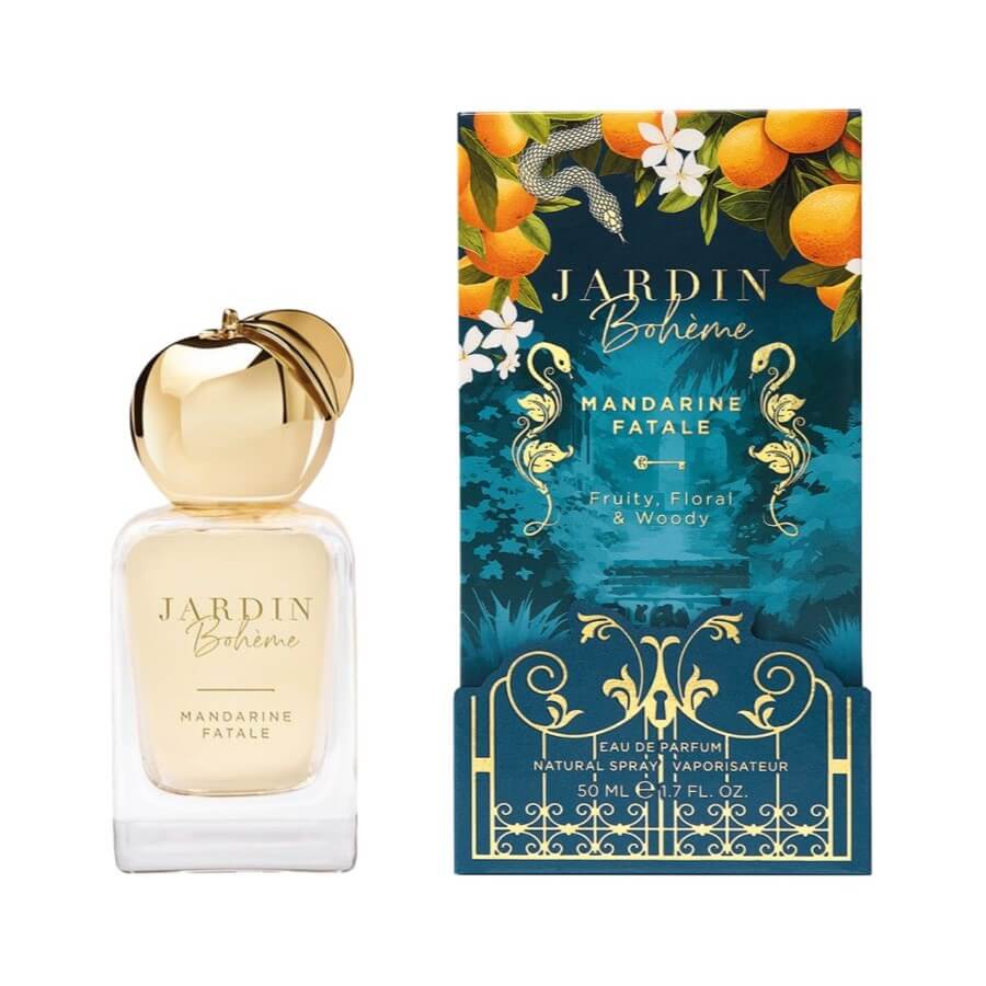Neka vas ponese u očaravajući svijet zabranjenih plodova i prepustite se neodoljivom iskušenju i zavodljivom mirisu najzavodljivije kolekcije Jardin Bohème. Mandarine Fatale započinje uzbudljivom notom živahnog grejpa, limuna i sočne mandarine koja se na vašoj koži osjeća poput svjetlucave kapi. U srcu, začinjena mješavina papra i klinčića budi osjetila, dok je u deliciji jasmina, koja daje Eau De Parfum senzualnu dubinu. Dimni vetiver u kombinaciji s toplim benzoinom i smolastim olibanumom stvara zavodljiv i nezaboravan mirisni trag.