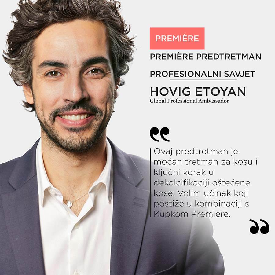 Obilno nanesite na mokru kosu prije šamponiranja i umasirajte. Ostavite da djeluje 5 minuta. Nemojte ispirati, te nanesite Premiere kupku direktno na to kako biste povećali učinkovitost. Isperite i nanesite Premiere njegu ili masku.