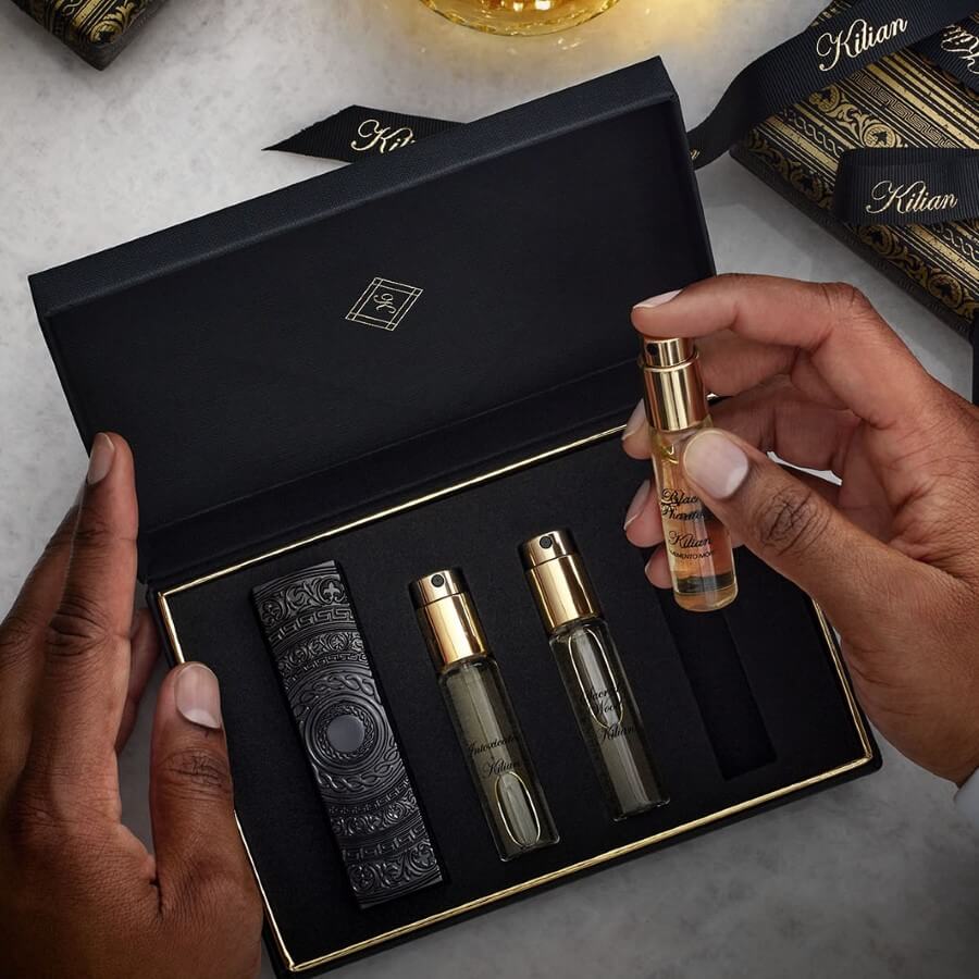 KILIAN PARIS predstavlja novo limitirano izdanje Cellars Discovery Set, koje sadrži četiri različita parfema iz ove mirisne obitelji, zajedno s crnim Talismanom. Savršen set za nadolazeće avanture.