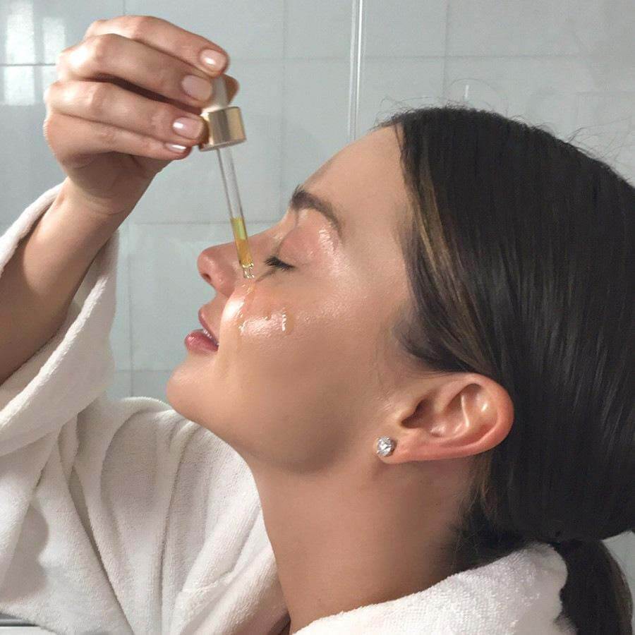 Zagrijte nekoliko kapi u dlanovima, zatim nanesite na očišćenu kožu lica, vrata i dekoltea. Nastavite s uobičajenom hidratantnom kremom.