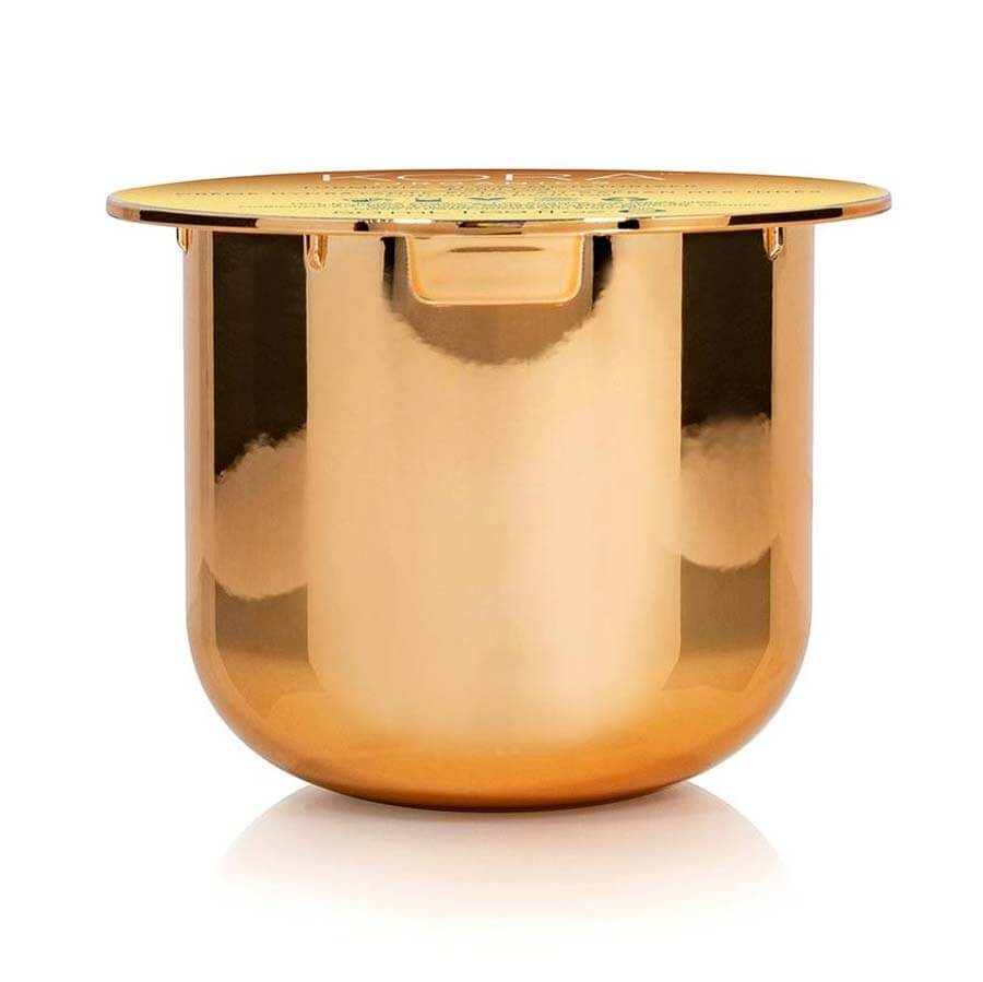 Kapsula za ponovno punjenje hidratantne kreme Kora Organics Turmeric Glow Moisturizer. Nakon što potrošite hidratantnu kremu, možete ju jednostavno zamijeniti ovom kapsulom i ponovno uživati u inovativnoj formuli za sjaj. Turmeric Glow Moisturizer koristi inovativni liposom koji posebno cilja pojavu hiperpigmentacija, tamnih mrlja, finih linija i bora te tena bez sjaja. Hranjiva i intenzivno hidratantna formula ima posvjetljujući učinak na kožu zahvaljujući certificiranom organskom ekstraktu kurkume, ekstraktu sladića, ulju šipka, morskim algama, pustinjskoj datulji i ulju marakuje te je čini prekrasno gipkom.