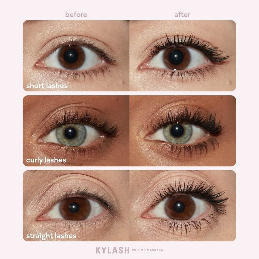 S Kylash Volume Mascara iz kolekcije KYLIE COSMETICS by Kylie Jenner u tren oka postižete zadivljujući volumen, podatnu uvijenost i zavidnu dužinu trepavica. Četkica za trepavice ima prozračne dlačice koje pažljivo razdvajaju svaku dlačicu, omogućujući da svaka trepavica bude potpuno obavijena visoko pigmentiranom, veganskom formulom. Vaše trepavice su višedimenzionalno definirane, što ih čini vizualno dužima i gušćima. Lagana formula se ne lijepi, ne stvara grudice i ne razmazuje se – naprotiv, hrani, jača i štiti vaše trepavice zahvaljujući ulju koštica grožđa i provitaminu B5. Vosak od rižinih mekinja, karnauba vosak i sintetički pčelinji vosak dodatno pridonose elastičnoj uvijenosti i većoj dužini trepavica.