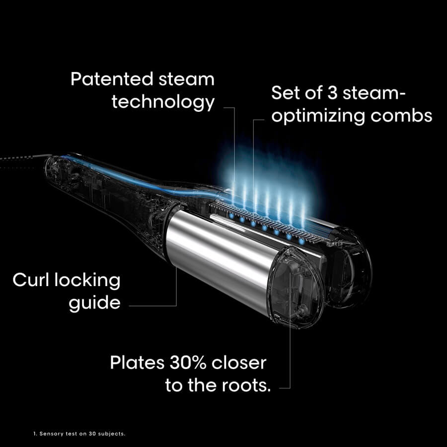 * Instrumentalni test; SteamPod 4.0 u usporedbi sa SteamPod-om 4.0 bez pare i češlja. Testirano na kosi tipa 5 (kovrčava kosa). ** Instrumentalni test; lomljenje izmjereno uzastopnim češljanjem nakon 15 prolaza SteamPod-om 4.0 na izbijeljenoj kosi (tip kose 5, kovrčava kosa), u usporedbi sa SteamPod-om 4.0 bez pare i češlja.