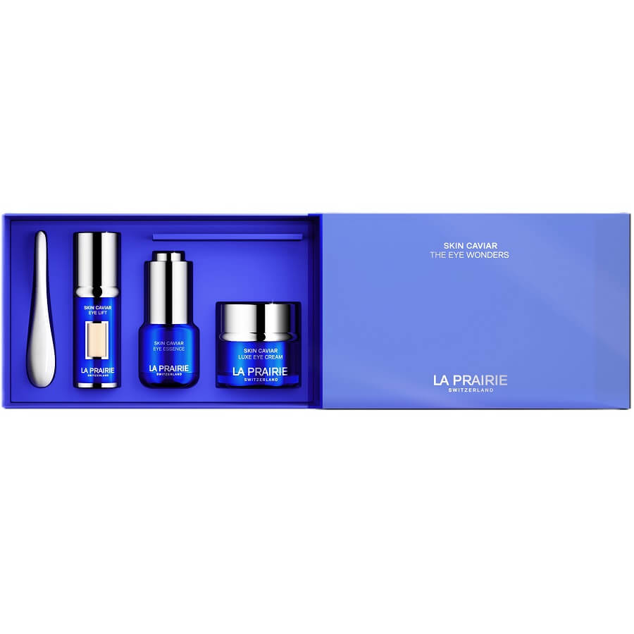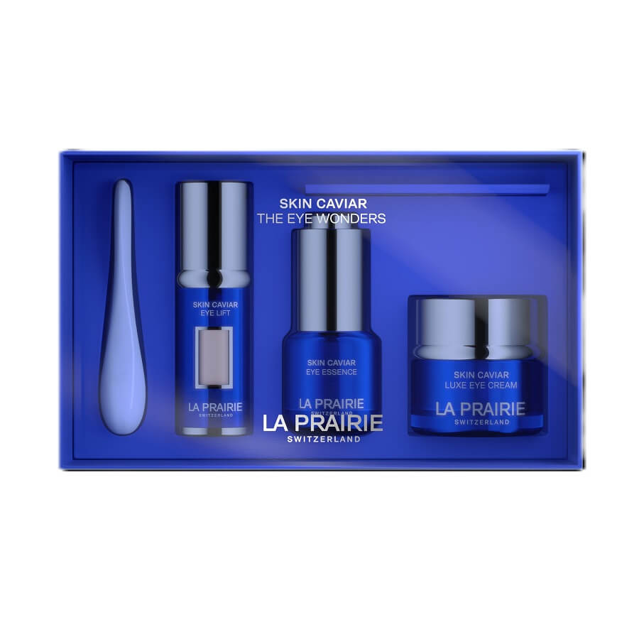 La Prairie predstavlja Skin Caviar Eye Wonders: set s četiri komponente za zaglađivanje, učvršćivanje i preoblikovanje koji sadrži tri proizvoda za oči iz kolekcije Skin Caviar i jedan ekskluzivni masažni alat. Pokreće ga La Prairie's Exclusive Cellular Complex™ i ekstrakti kavijara.