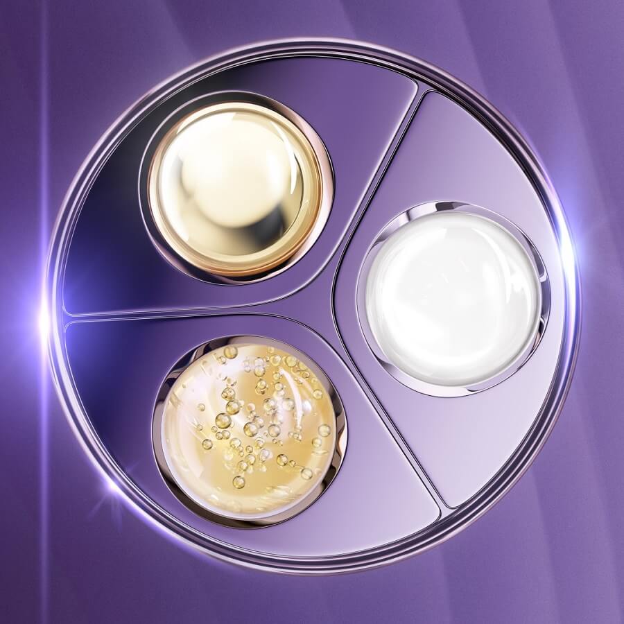 CILJANO DJELOVANJE NA TRI KLJUČNA PODRUČJA 1. BORE: Retinol, zvijezda anti-age njege, potiče obnavljanje stanica kože i smanjuje vidljivost čak i najupornijih bora. 2. TAMNE MRLJE: Vitamin C, snažan antioksidans, posvjetljuje tamne mrlje i ujednačava ten, dajući koži blistav i zdrav izgled. 3. TEKSTURA KOŽE: X-peptid i ceramidi umiruju i pospješuju obnavljanje kože, utječući na njenu teksturu i elastičnost.