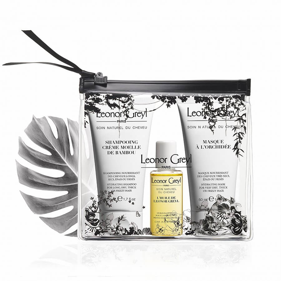 <p>Sastavljen od kultnih proizvoda brenda namijenjenih vrlo suhoj, gustoj ili kuštravoj kosi, ovaj set uključuje tri nezaobilazna proizvoda u putnoj veličini. Savršen za lagano pakiranje i sva vaša putovanja, uključuje Huile de Leonor Greyl, Masque à l’Orchidée i Shampooing Crème Moelle de Bambou, cjelovit ritual njege koji intenzivno hidrira kosu, vraća joj mekoću i gipkost te pojačava njezin sjaj. Praktičan format omogućuje jednostavno spremanje u svaku putnu torbu, za raskošno nahranjenu i zaštićenu kosu, kamo god krenuli.</p>