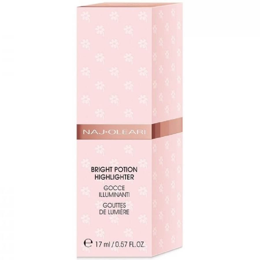 Lagani „napitak“, elixir za posvjetljivanje koji oblikuje vaše lice novim konceptom za konturiranje koji pojačava vaše prednosti i daje vašem licu svjež osjećaj. Lagana tekstura Bright Potion posvjetljivača stapa se kontaktom, stvarajući veo blistavosti koji se brzo suši i ugodan je na koži, bez osjećaja ljepljivosti. Sferične čestice s dijamantnom sredinom reflektiraju prirodno svjetlo, vidljivo ispunjujući fine linije i nedostatke, dajući osjećaj relaksirane, glatke kože. Specijalno ulje s omekšavajućim sastojcima pružaju potpuno novi osjećaj dok aktivni sastojci garantiraju blistav rezultat koji je dugotrajan i vodootporan. Velika koncentracija tankih metalik bisera znači da je potrebno samo par kapi ovog proizvoda da stvorite sofisticirani, sjajan ten.