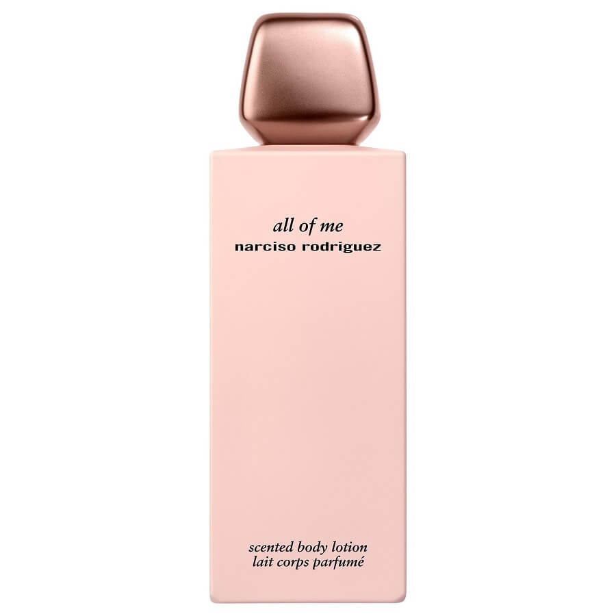 All of me novi je ženski miris branda Narciso Rodriguez. Prizmatično cvjetni miris koji spaja legendarni miris cvijeta ruže sa smionom pelargonijom i nježnim bijelim mošusom. višeslojan poput žene koja ga nosiNarciso Rodriguez all of me, jedinstvena esencija mene... Svih mojih osobnosti, svoj mojih 'boja'... Novi je ženski smion i višeslojan miris koji reinterpretira ženstvenost za novu generaciju žena. Slavlje individualnosti za novu eru moćnih i slobodnih žena koje otkrivaju vlastitu istinu i samopouzdanje, te hrabro prihvaćaju sve što ih čini jedinstvenima.