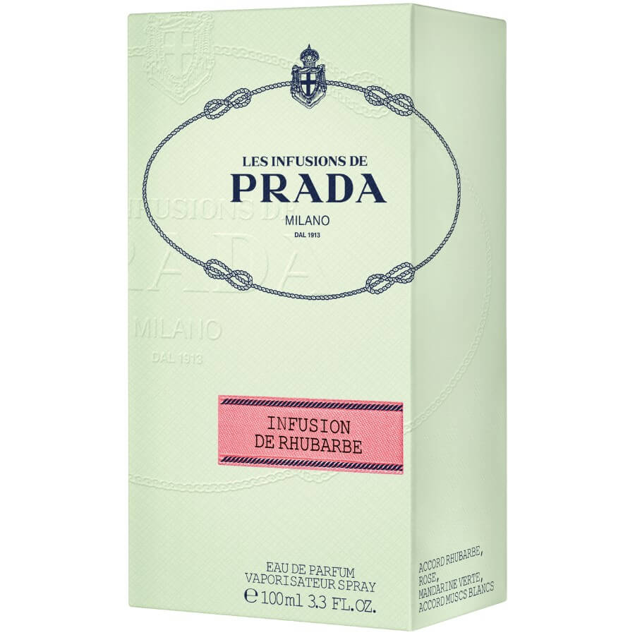 Bočica: Kultna Prada bočica reinterpretirana je u nježnoj ružičastoj nijansi, odražavajući razigranu prirodu rabarbare u sebi. Luksuzna staklena bočica ukrašena je prepoznatljivim Saffiano kožnim čepom, sada u živoj ružičastoj nijansi. Ovaj razigrani dodir dodaje dašak boje i osobnosti, čineći bočicu pravim odrazom mirisa koji sadrži.