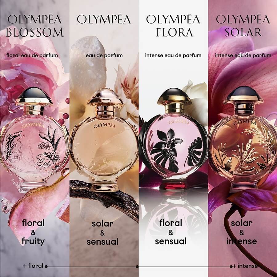 Otkrijte parfumsku vodu Olympéa Flora, novi Paco Rabanne ženski miris. Budite popust glamurozne amazonske božice, koja dobro poznaje mirisnu snagu cvijeća, skrivenu u ovoj intenzivnoj kompoziciji. Cvjetni ružičasti buket kreiran od trnovitih ruža i svježih latica božura utjelovljuje Olympéa Floru.Prepustite se mirisu svježih ruža i božura u punom cvatu koji je isprepleten sočnim sorbetom crnog ribiza, najintenzivnijem i najpostojanijem izdanju Olympéa linije. Staklena bočica Olympéa Flora dolazi u zagasitoj crnoj boji kako bi dodatno naglasila živahnu ružičastu nijansu mirisa. Reljefni cvijet crne orhideje i tropko lišće prizivaju slatku notu vanilije koja se krije u potpisu mirisa. Cjelokupni izgled bočice dodatno je naglašen crnim krilima lovorovog lišća i zlatno obrubljenog čepa. Intenzivnost esencije ruže reflektirana je ružičastom bojom u dnu bočice, koja je kao stvorena za boginje.