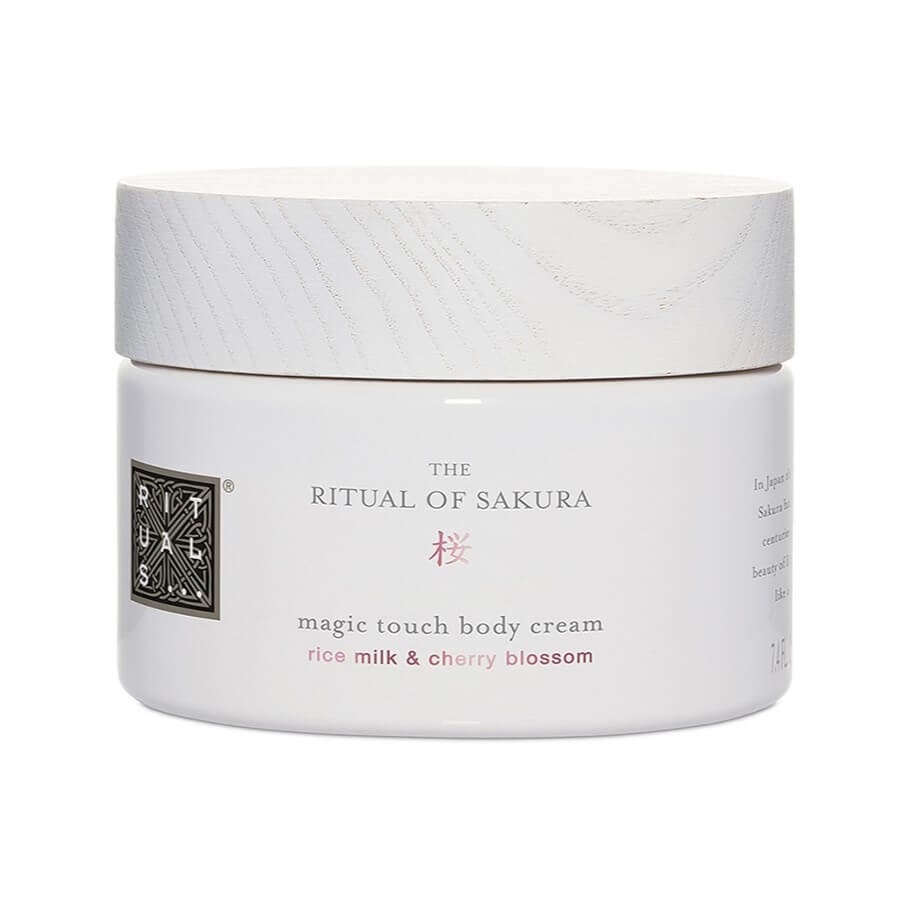 Bogata, baršunasta krema za tijelo iz The Ritual of Sakura kolekcije hrani i njeguje vašu kožu. Jedinstveni sastav antioksidansa i Centelle asiatice jača vašu kožu i opskrbljuje je vitaminom E. Zahvaljujući posebnoj formulaciji i prozračnoj kremastoj teksturi posebno se lako razmazuje, a cvjetovi trešnje vašoj koži pružaju prekrasan cvjetni miris.