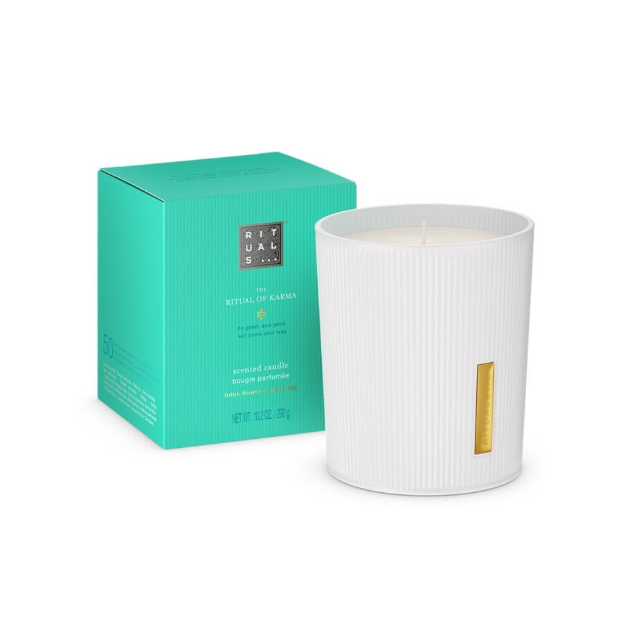 https://www.douglas.hr/p/rituals-the-ritual-of-karma-scented-candle-rit1118303?c=8962RIT1118303The Ritual of Karma Scented Candlehttps://media.douglas.hr/media/image/4b/99/0b/8719134183030.jpg28.7928.79EURInStockHome & Lifestyle/Dom/Svijeće<p>Stvorite toplu, ljetnu atmosferu u svom domu uz pomoć mirisne svijeće (290 g) iz kolekcije The Ritual of Karma. U blago slatkastom mirisu cvijeta lotosa u kombinaciji sa stimulativnim bijelim čajem možete uživati do 50 sati. Dopustite da vas sunčane i osvježavajuće note odvedu u daleki raj. Ova okrepljujuća i iskričava kompozicija otvara se eksplozijom svježine bergamota i grejpfruta koja vodi do nježnog srca od lotosa, cvijeta naranče i jorgovana. Miris ljetne večeri trajat će još satima uz drvenastu završnu notu mošusa i sandalovine. Za intenzivnije mirisno iskustvo, kombinirajte je s mirisnim štapićima iz kolekcije The Ritual of Karma za posebnu ljetnu atmosferu.</p>RitualsEUR00https://media.douglas.hr/media/image/61/35/c3/8719134183030_1.jpghttps://media.douglas.hr/media/image/26/3d/d0/8719134183030_2.jpghttps://media.douglas.hr/media/image/b7/99/25/8719134183030_3.jpghttps://media.douglas.hr/media/image/88/16/86/8719134183030_4.jpghttps://media.douglas.hr/media/image/91/ce/0c/8719134183030_5.jpgadd-to-cart99.30 EUR * /1 kg290,g290g000Mirisna svijećaThe Ritual of Karma