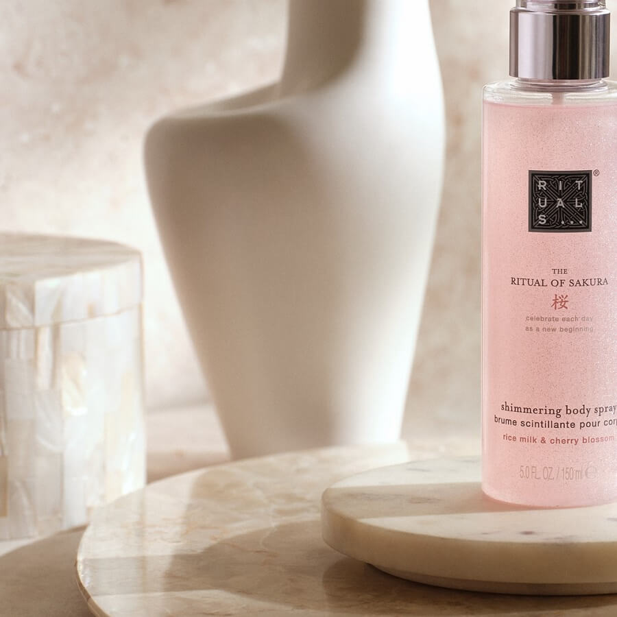 Predstavljamo vam naš svjetlucavi sprej za tijelo iz kolekcije The Ritual of Sakura. Formula koja je jednostavna za nanošenje, ne lijepi se i obogaćuje vašu kožu zadivljujućim sjajem. S tri nijanse sjaja, savršen je za sve tonove kože, a nanošenje je lako zahvaljujući mlaznici za sprej. Idealan je za upotrebu u pokretu. Obogaćen našim najprodavanijim mirisom cvijeta trešnje, svjetlucat ćete i mirisati cijeli dan.
