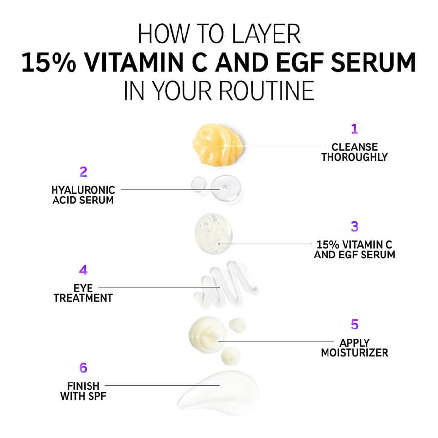 Dovoljno nježan za svakodnevnu upotrebu. Može se koristiti ujutro i poslijepodne, ali ako se koristi samo jednom dnevno, preporučujemo ujutro. Na očišćenu kožu nanesite količinu veličine graška na lice i vrat nakon čišćenja i hijaluronske kiseline ako ju koristite. Ako želite koristiti i druge proizvode za njegu kože, pričekajte oko 10 minuta prije nego ih upotrijebite. To daje stanicama kože dovoljno vremena da reagiraju na EGF i neće utjecati na proces pomlađivanja stanica. Ako koristite u poslijepodnevnim satima, koristite onu noć u kojoj ne koristite Retinol i AHA piling.