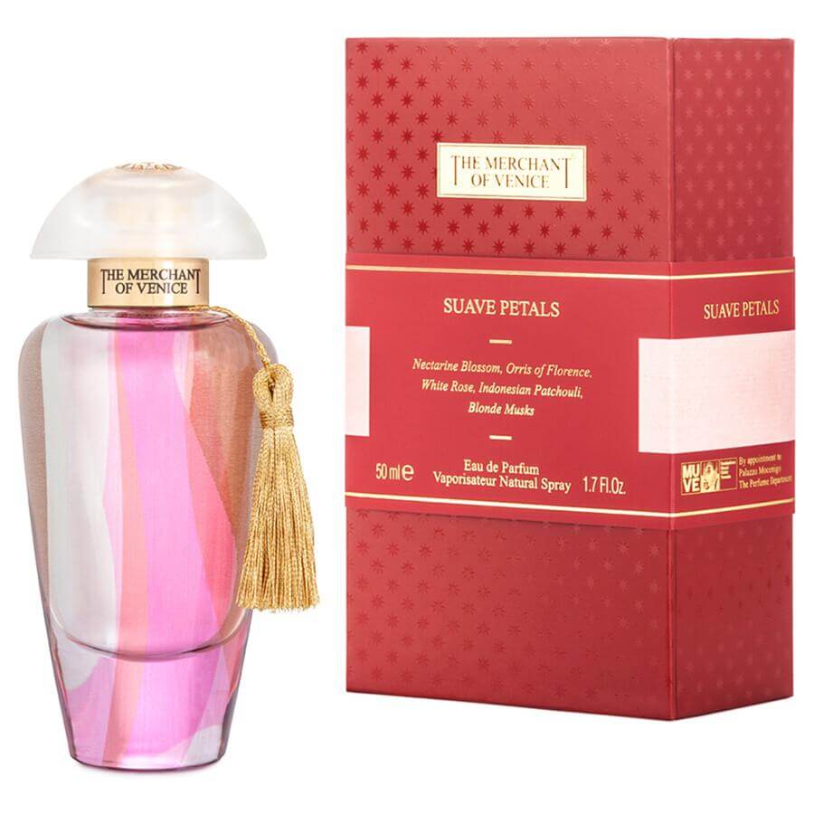 https://www.douglas.hr/p/the-merchant-of-venice-suave-petals-eau-de-parfum-vm481062?c=8525VM481062Suave Petals Eau de Parfumhttps://media.douglas.hr/media/image/g0/a2/18/VM481062_1.jpg100.99100.99EURInStockParfemi/Ženski parfemi/Ženski mirisi<p>Suave Petals je ženski cvjetni miris. U Aziji, breskvin cvijet predstavlja ženinu ljepotu. Mekani baršunasti dodir ovog mirisa stvara osjetilne slojeve koji blago ukrašavaju žensku kožu. Nježni i zavodljivi spoj bijele ruže, perunike iz Firenze, cvijeta mandarine i mošusa te orijentalna fascinacija pačulija stvaraju auru misterije.</p>The Merchant Of VeniceEUR00https://media.douglas.hr/media/image/9d/00/3b/VM481062_2.jpgadd-to-cart2019.80 EUR * /1 l50,ml50ml000Parfemska vodaMurano Collection