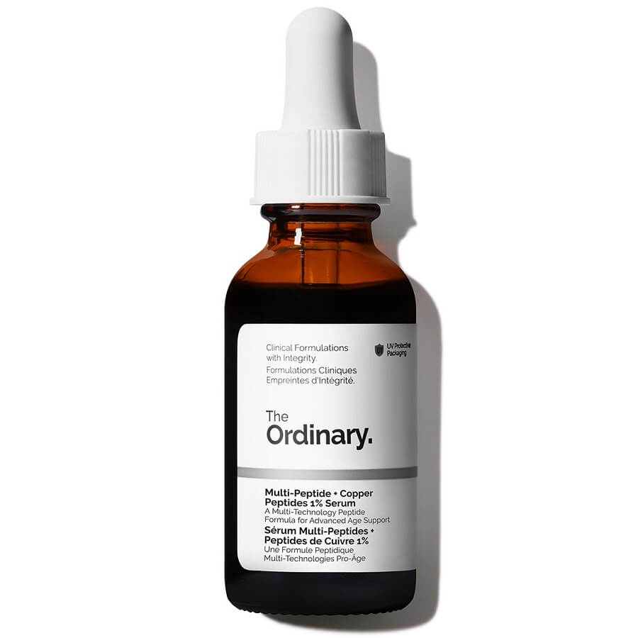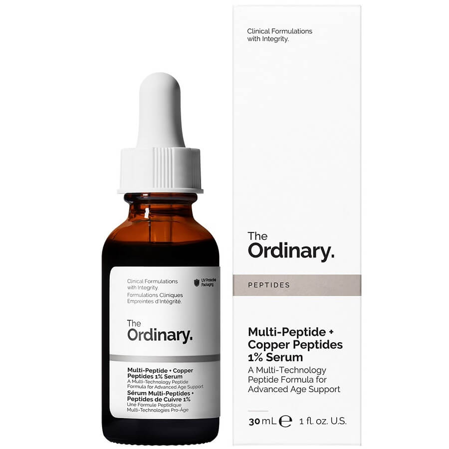 Multi-Peptide + Copper Peptides 1% (prije "Buffet + Copper Peptides 1%") univerzalna je formula koja koristi višestruke tehnologije za podršku koži kako bi istovremeno ciljala na različite znakove starenja. Formula sadrži pet dobro istraženih peptidnih tehnologija, aminokiseline pogodne za kožu i više hijaluronskih kiselina. Za one koji traže sveobuhvatno rješenje za njegu kože, Multi-Peptide + Copper Peptides 1% pomaže poboljšati izgled finih izražajnih linija i podržava ukupnu elastičnost, gipkost i čvrstoću kože. Budući da serum sadrži nepuferirane bakrene peptide, također se bori protiv znakova starenja koji su obično povezani s oksidativnim stresom, što rezultira blistavom kožom zdravijeg izgleda. Formula sadrži GHK-Cu, SYN™-AKE, Matrixyl™ Synthe'6™, Matrixyl™ 3000, ARGIRELOX™ peptid, hijaluronsku kiselinu, aminokiseline i bio-derivate. Svi zaštitni znakovi vlasništvo su svojih vlasnika. SYN™ je zaštitni znak DSM-a, Matrixyl™ synthe'6™ i Matrixyl™ 3000 su zaštitni znakovi Sederma Inc., a ARGIRELOX™ je zaštitni znak Lipotec S.A.U. Ni DECIEM ni The Ordinary nisu povezani s vlasnicima zaštitnih znakova.