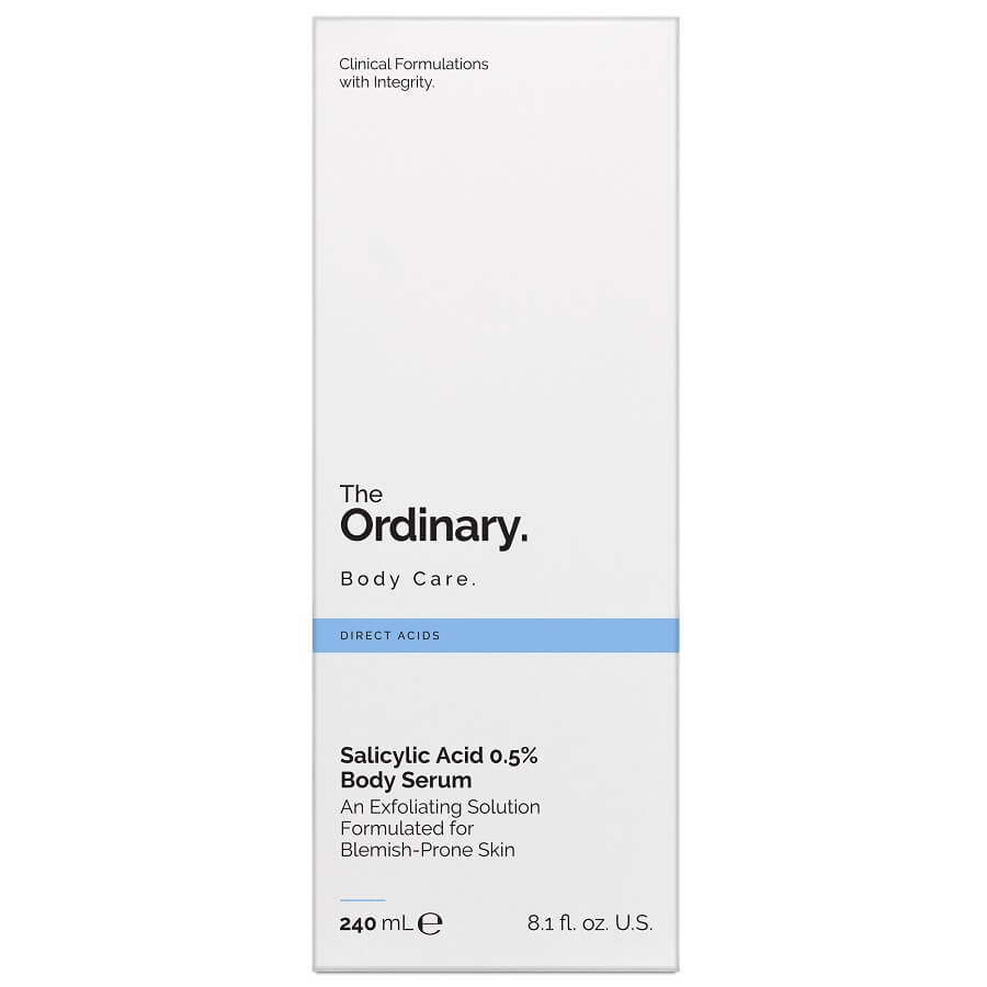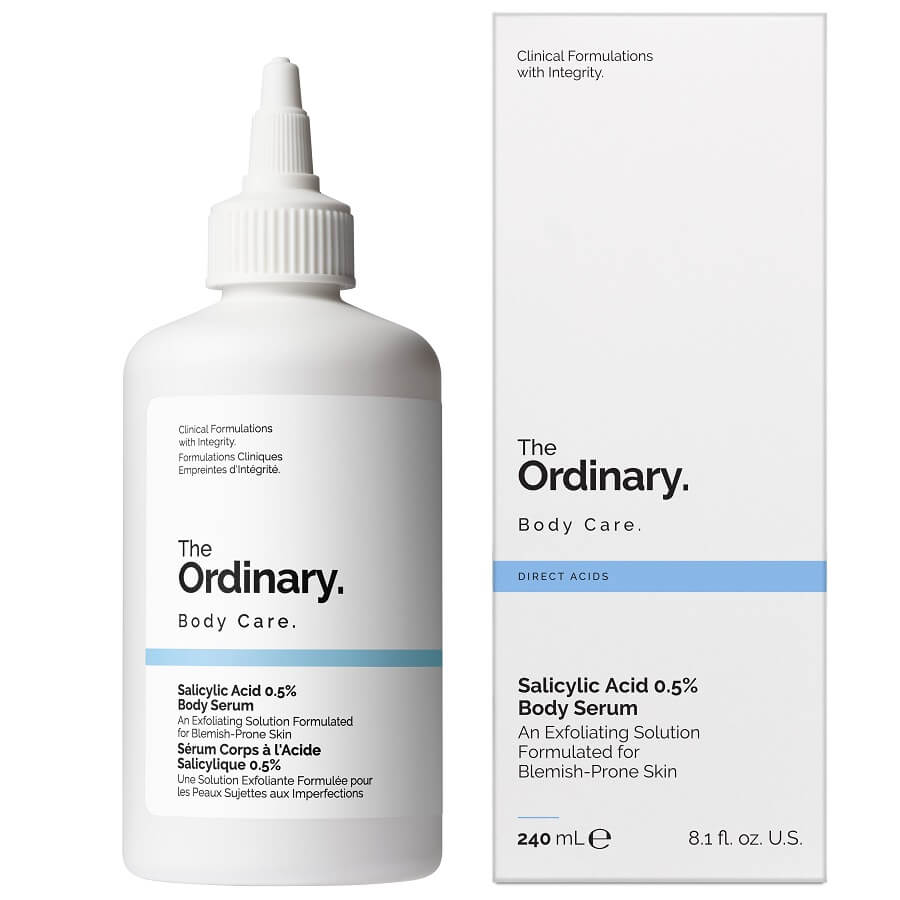 The Salicylic Acid 0.5 % Body Serum s koncentracijom od 0.5 % salicilne kiseline dizajniran je za kožu sklonu nepravilnostima, kako bi ujednačio nesavršenosti i učinio kožu blistavijom i glatkom. Formula osigurava površinsku eksfolijaciju zahvaljujući dodatku 0.5 % salicilne kiseline, koja potiče prirodno ljuštenje mrtvih stanica kože. Jedna od prednosti salicilne kiseline je ta što je lipofilna, što znači da može ukloniti prljavštinu i nečistoće koje mogu začepiti pore.