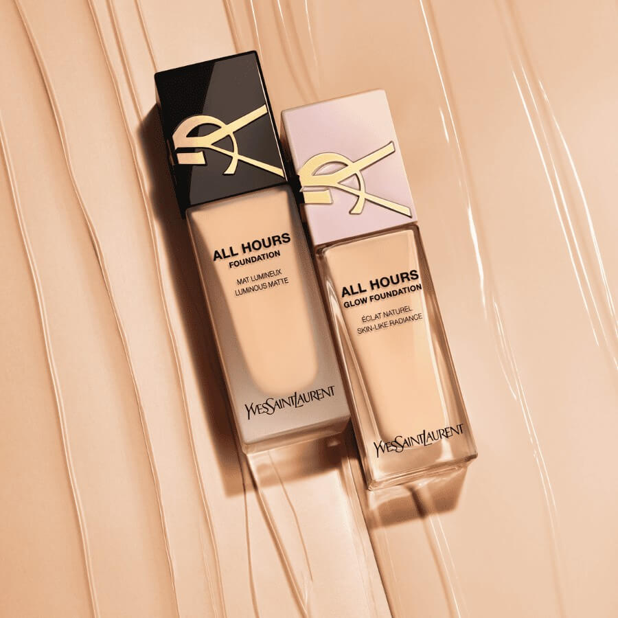 Doživite transformativnu moć Yves Saint Laurent ALL HOURS Glow tekućeg pudera, spoja njege za kožu i šminke koji pruža beskompromisno blistav ten. Ova inovativna podloga besprijekorno stapa pigmente koji oponašaju kožu s luksuznom bazom seruma, stvarajući ultimativni couture blistavi izgled kože. Više od obične šminke, ALL HOURS Glow obogaćuje vašu kožu koncentriranom dozom aktivnih sastojaka, uključujući hijaluronsku kiselinu i niacinamid, za vidljivu transformaciju. Svjedočite nevjerojatnim prednostima njege: klinički dokazano u samo dva tjedna, koža je 100 % više hidratizirana i punija, 5 puta blistavija i izgleda 10 puta zdravije. Ovaj moćan koktel sastojaka za njegu kože, uključujući pažljivo odabrana ulja makadamije prirodnog podrijetla i latice jasmina, djeluje na zaglađivanje, hidrataciju i popunjavanje vaše kože. ALL HOURS Glow nudi srednje do potpuno prekrivanje, koje ujednačava vaš ten, a istovremeno naglašava blistavost vaše kože. Uživajte u 24-satnom postojanom i prirodnom sjaju. ALL HOURS Glow puder dolazi u 22 nijanse što omogućava jednostavan pronalazak vaše idealne nijanse, osiguravajući besprijekoran finish za sve tonove kože. Luksuzna bočica, zaštitni znak YSL elegancije, krasi zlatni Cassandre logo na prozirnoj silueti, s ultra sjajnim biserno ružičastim čepom. Ovaj izuzetan dizajn odražava blistavu ljepotu unutar bočice. Prigrlite svjež i blistav finish, ALL HOURS Glow puder koji će vam dati osjećaj samopouzdanja i blistavosti tijekom cijelog dana.