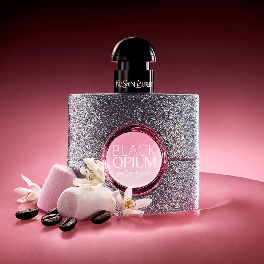 Sama bočica je svjedočanstvo YSL-ove baštine glamura. Blistava eksplozija srebrnog glittera prekriva kultnu BLACK OPIUM bočicu, odražavajući šljokice couture haljine i pojačavajući smjelost i raskoš ovog svečanog mirisa. Njezin ružičasti prozor nudi uvid u opojni svijet noćnih užitaka, obećavajući nezaboravno iskustvo.
